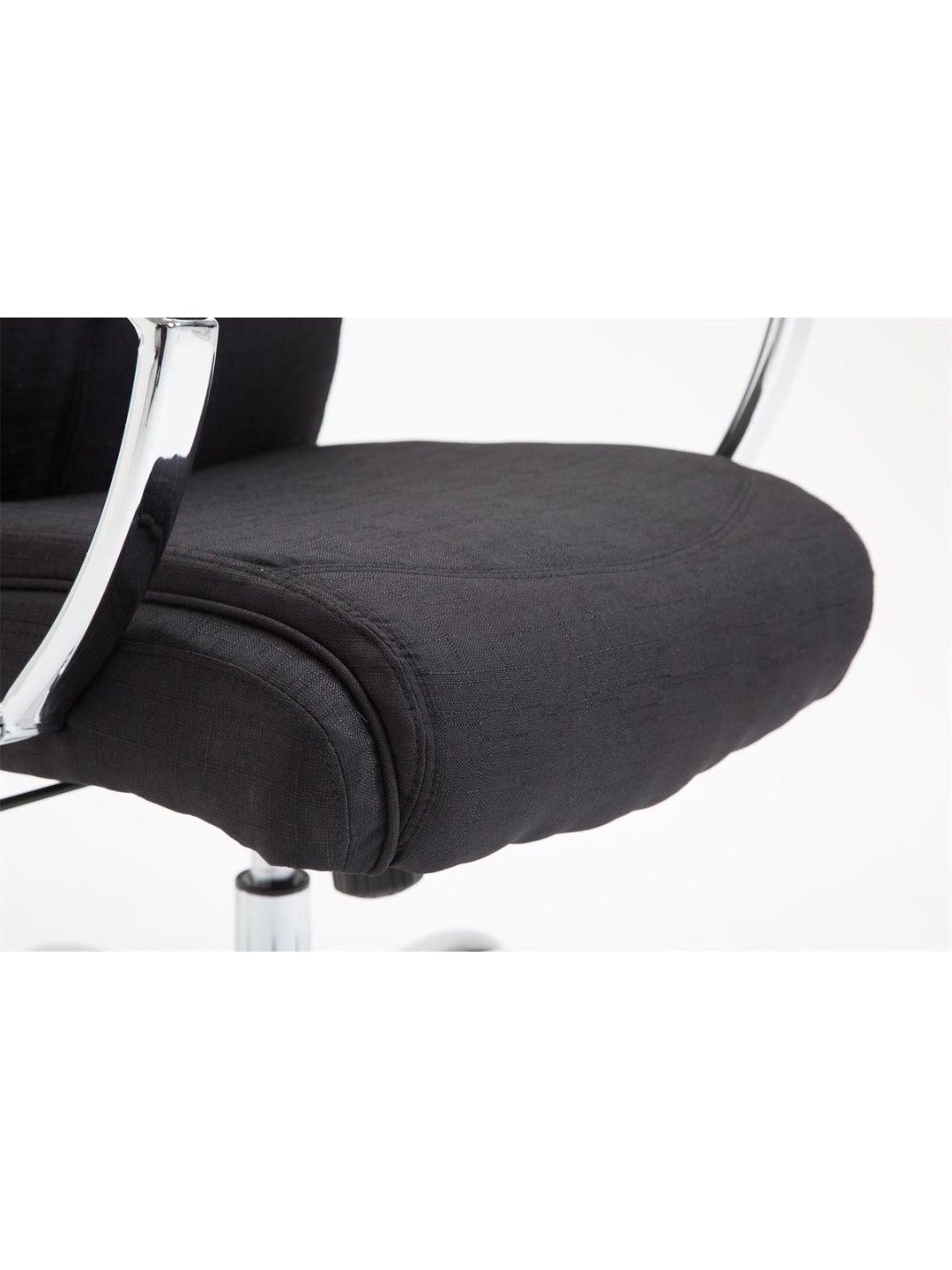 La silla de oficina XL Vaud es ideal para personas altas y pesadas, ya que el resorte de presión de gas está diseñado para un uso prolongado de hasta 140 kg. Es una silla de oficina con acolchado de alta calidad y funda de tela. La altura del asiento se puede ajustar de forma continua mediante la palanca situada debajo del asiento, lo que garantiza un asiento ergonómico. El mecanismo basculante incorporado también garantiza una mayor libertad de movimiento. La estructura de la silla de oficina es de metal con aspecto cromado. Se sostiene de forma segura sobre cinco robustas ruedas de plástico. No importa si se trata de suelos duros o alfombrados, siempre podrá rodar con facilidad y soltura por el suelo.