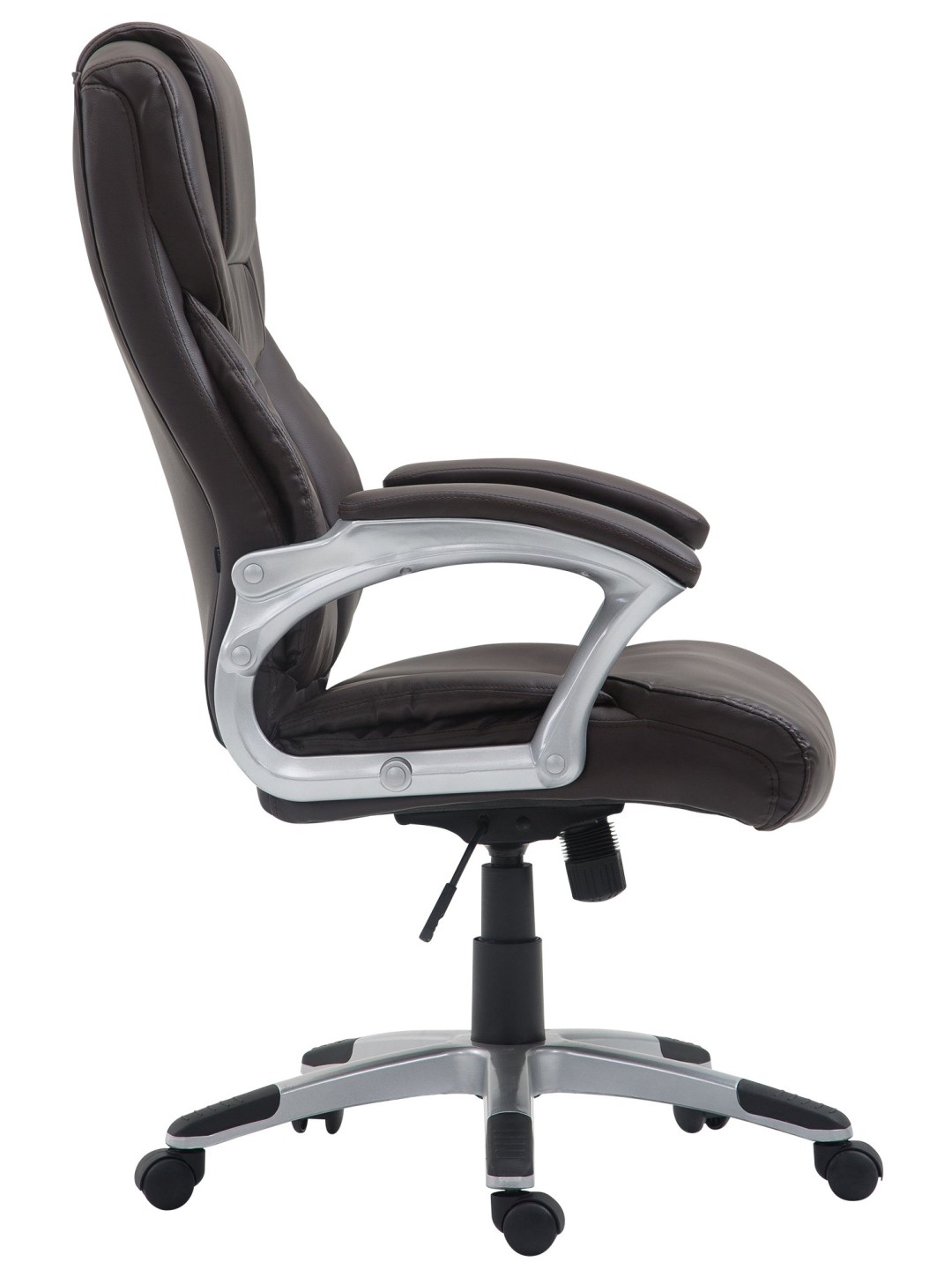 El acabado de alta calidad de esta silla de oficina impresiona con una robusta estructura de plástico en un elegante color gris que se integra armoniosamente en cualquier entorno. El suave tapizado de piel sintética y el respaldo ergonómico de espuma fría garantizan una agradable sensación al sentarse.