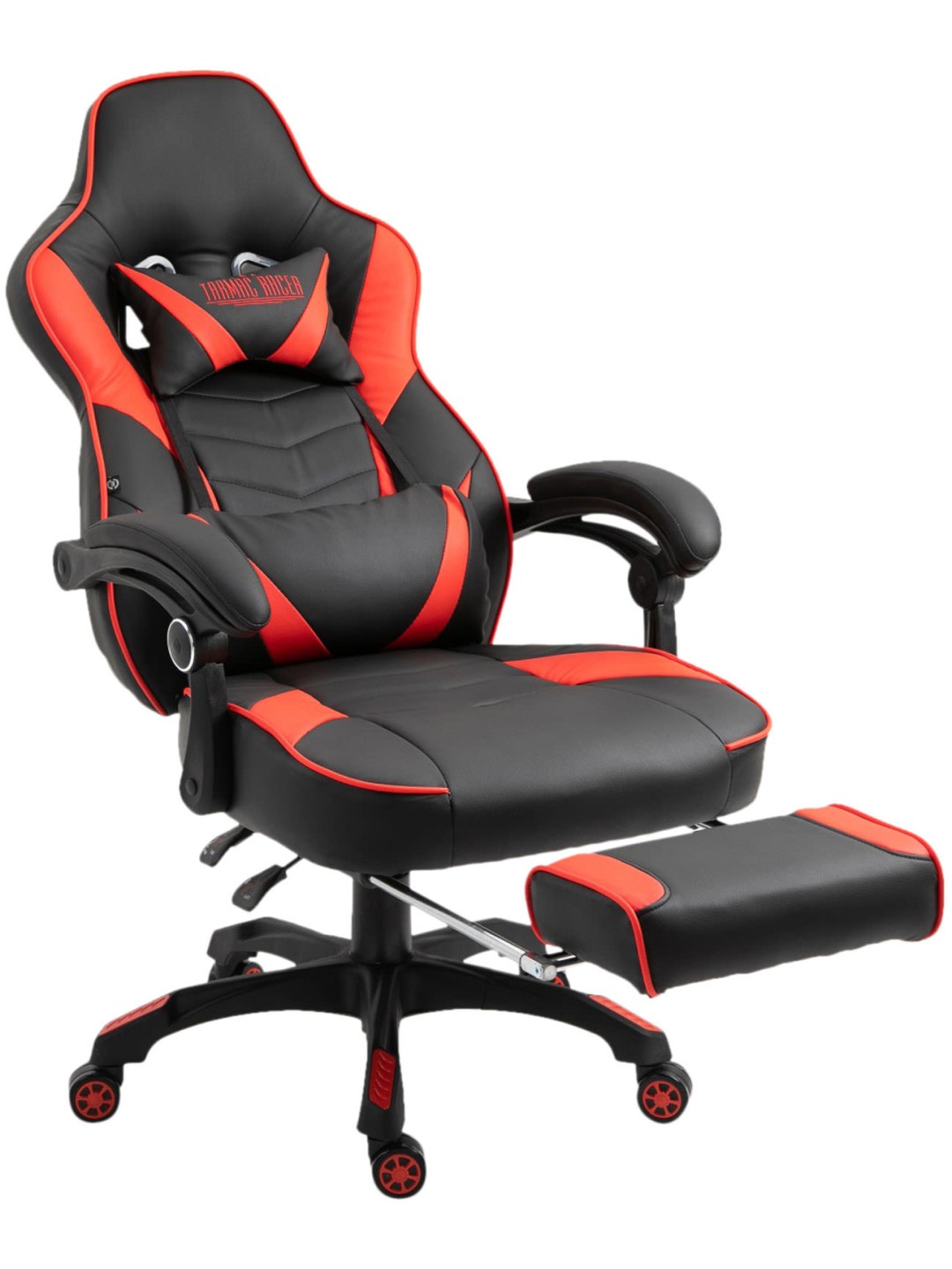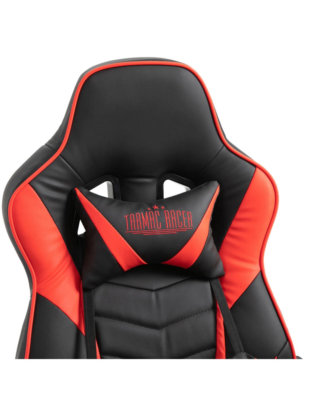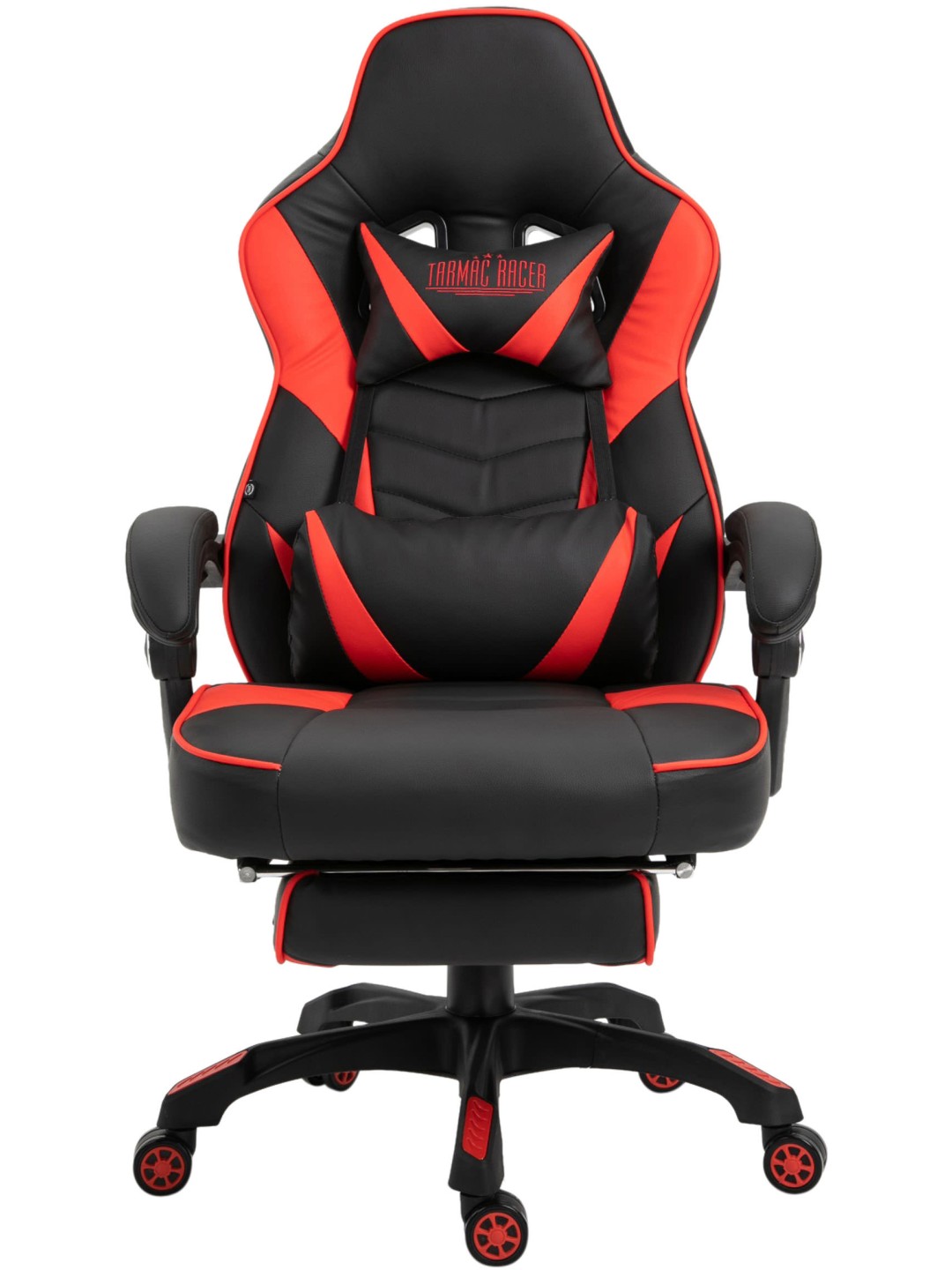 La silla de escritorio Tilos con un diseño atractivo y deportivo combina funcionalidad y comodidad de la mejor manera posible. El asiento y los reposabrazos, agradablemente acolchados, están tapizados con cuero artificial de fácil cuidado. El cojín cervical y lumbar extraíble no sólo garantiza una postura saludable al sentarse, sino también un confort duradero. El respaldo se puede ajustar hasta 150° y el reposapiés integrado también garantiza un descanso agradable. La silla de oficina se sostiene de forma segura sobre cinco ruedas suaves y una estructura de plástico. No importa si se trata de suelos duros o de moqueta, siempre puedes rodar fácil y libremente por el suelo.