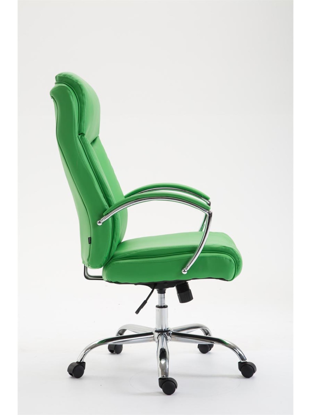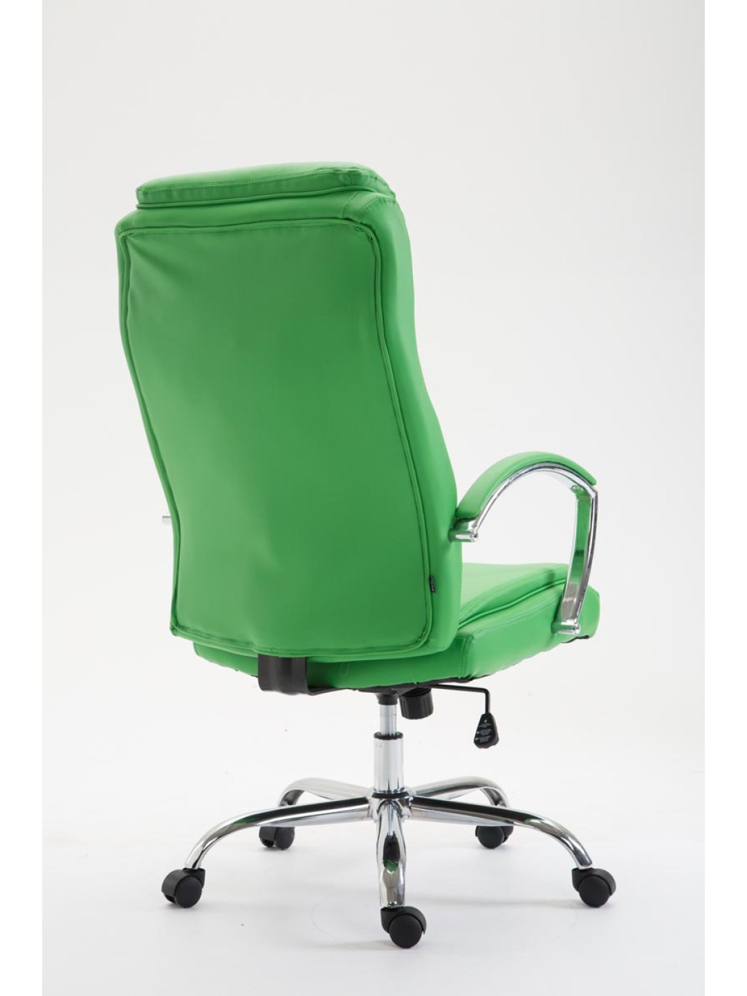 La silla de oficina XL Vaud es ideal para personas altas y pesadas, ya que el resorte de presión de gas está diseñado para un uso prolongado de hasta 140 kg. Es una silla de oficina con acolchado de alta calidad y funda de piel sintética. Las fundas de cuero artificial tienen la ventaja de que son elásticas y se estiran suavemente cuando se alivia la carga. Esto no sólo tiene un aspecto más bonito, sino que también aumenta la vida útil de la funda del asiento. La altura del asiento se puede ajustar de forma continua mediante la palanca situada debajo del asiento, lo que garantiza un asiento ergonómico. El mecanismo basculante incorporado también garantiza una mayor libertad de movimiento. La estructura de la silla de oficina es de metal con aspecto cromado. Se sostiene de forma segura sobre cinco robustas ruedas de plástico. Independientemente de si se trata de suelos duros o alfombrados, siempre podrá rodar con facilidad y soltura por el suelo.