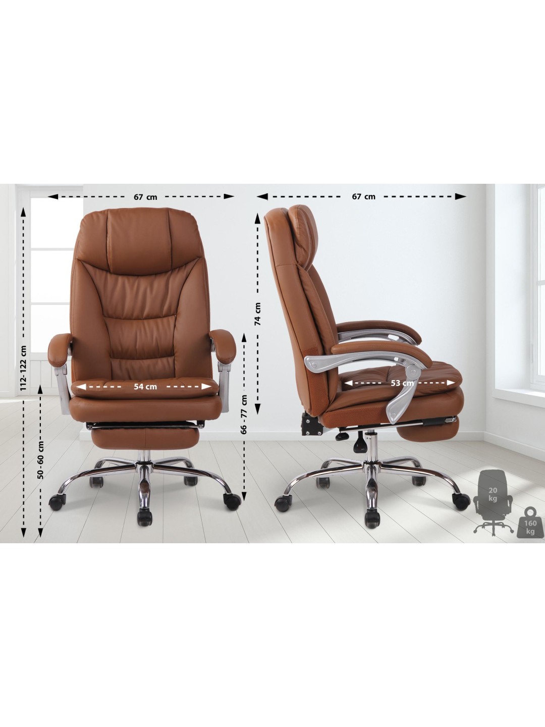 La silla de oficina Troy XL es cómoda y robusta. Su tapizado de alta calidad y su funda de cuero sintético de fácil cuidado ofrecen una sensación de comodidad que se mantiene incluso cuando permanece sentado durante largos períodos de tiempo. La capacidad de ajustar fácilmente el reposapiés y el respaldo contribuye a una experiencia de usuario relajada y a descansos agradables en los que puede recostarse y levantar las piernas.