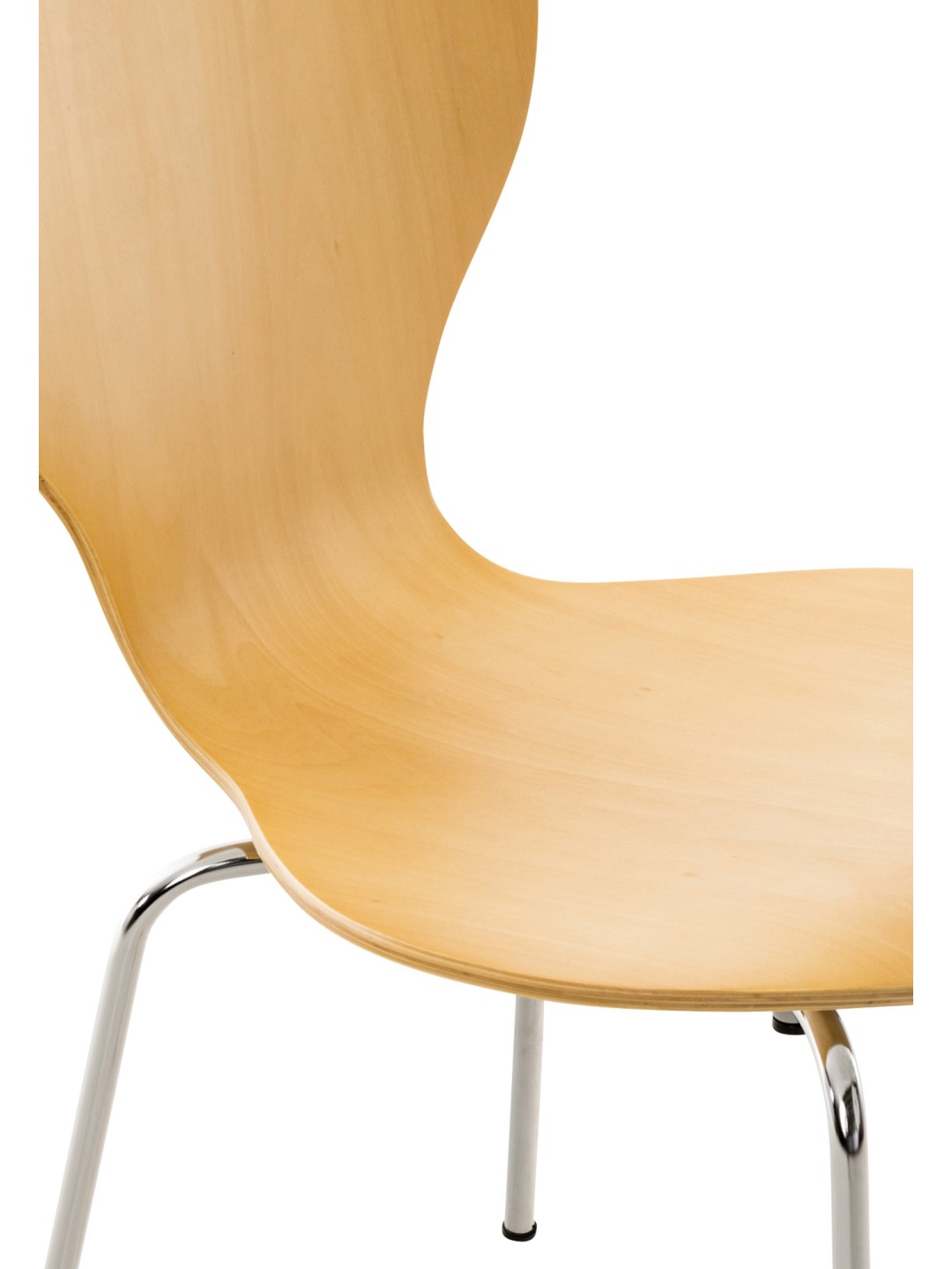 Esta silla apilable se caracteriza por su diseño ergonómico y su robusto asiento de madera, que garantiza un confort duradero. Con una altura de asiento de 45 cm y una altura total de 86 cm, ofrece una posición cómoda para sentarse.