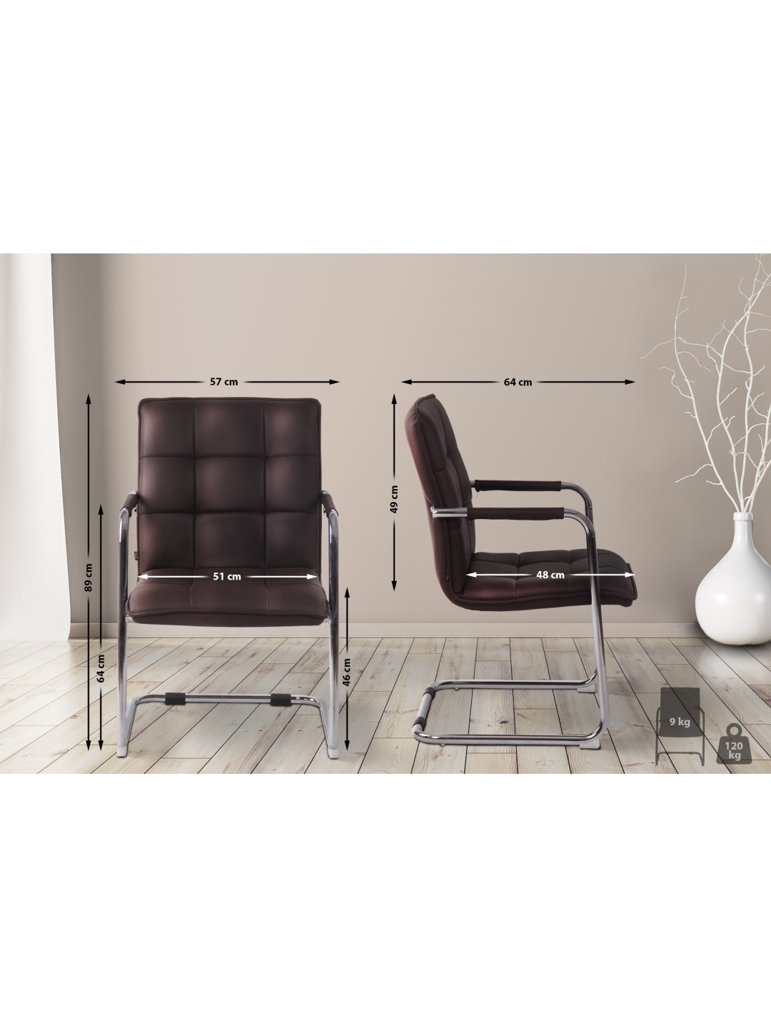 Silla de visita Gandia polipiel cromada, marrón