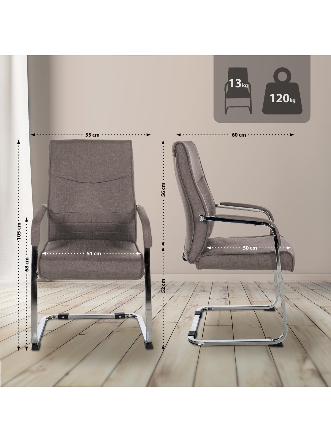 El Hobart impresiona por su diseño moderno, que pone un acento contemporáneo gracias a la estructura de metal con aspecto cromado. Los reposabrazos no ajustables proporcionan comodidad adicional y favorecen una postura sentada relajada. Con una construcción estable, la silla puede soportar hasta 120 kg, lo que promete seguridad y longevidad.