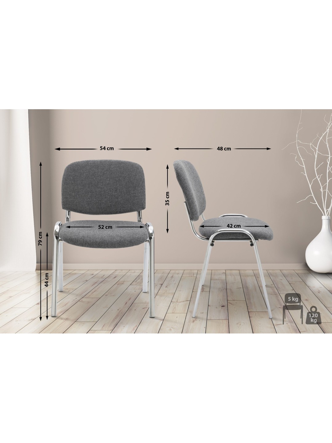 Además de su apariencia y diseño atemporal, este sillón se caracteriza particularmente por su asiento acolchado, lo que significa que incluso los períodos prolongados de estar sentado no resultan agotadores. El asiento y el respaldo están tapizados con una funda de tela de fácil cuidado. La estabilidad y la estabilidad están garantizadas por la estructura de metal de cuatro patas con aspecto cromado. Además, esta silla de conferencias se puede apilar hasta cuatro sillas y se puede guardar para ahorrar espacio. Esto lo hace ideal para ferias, eventos o similares.