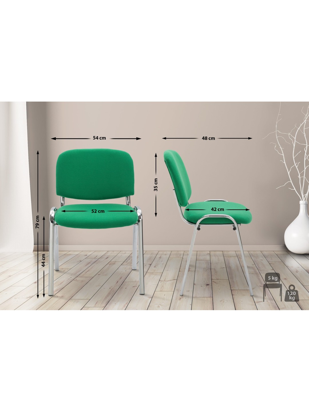 Además de su apariencia y diseño atemporal, este sillón se caracteriza particularmente por su asiento acolchado, lo que significa que incluso los períodos prolongados de estar sentado no resultan agotadores. El asiento y el respaldo están tapizados con una funda de tela de fácil cuidado. La estabilidad y la estabilidad están garantizadas por la estructura de metal de cuatro patas con aspecto cromado. Además, esta silla de conferencias se puede apilar hasta cuatro sillas y se puede guardar para ahorrar espacio. Esto lo hace ideal para ferias, eventos o similares.