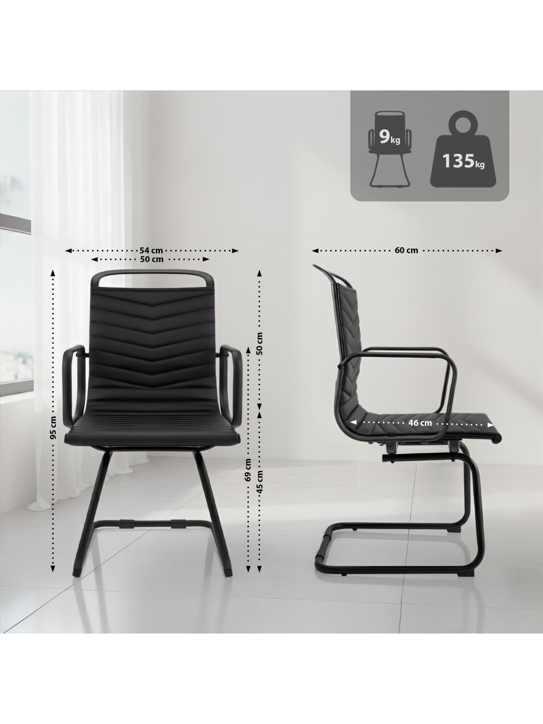 Silla de visita Tomkin de piel sintética, negro