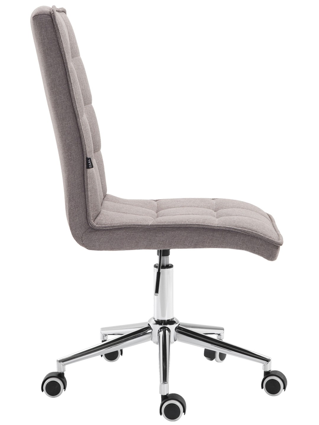 Con un respaldo alto, ofrece un apoyo cómodo para toda la zona de la espalda. La silla se apoya sobre una base estable de metal con aspecto cromado. Está equipado con ruedas de marcha suave, adecuadas tanto para alfombras como para suelos duros.
