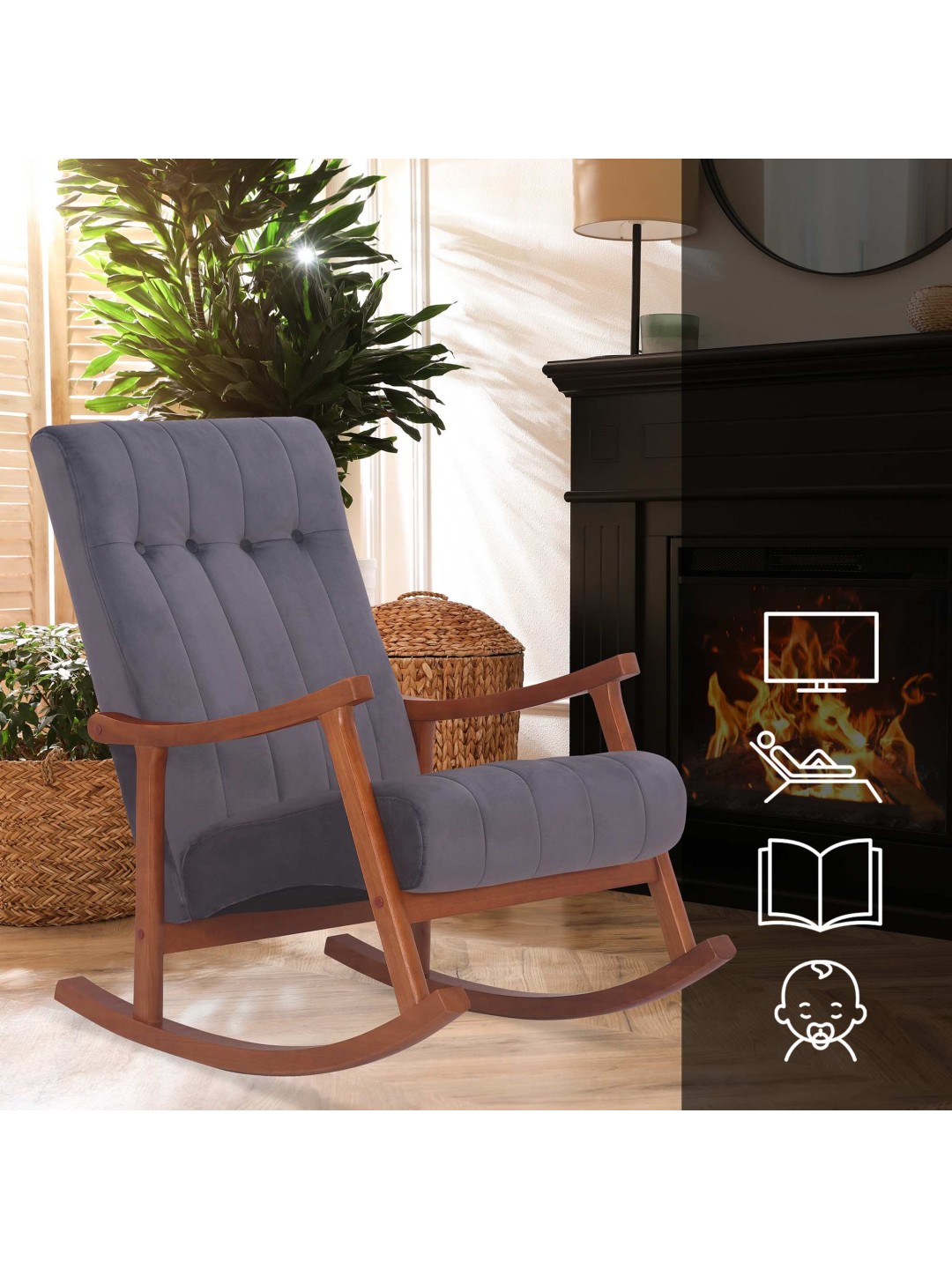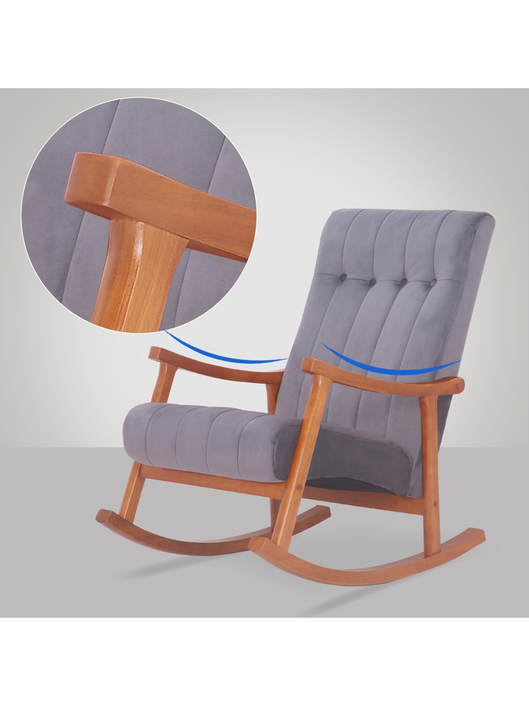 Mecedora Saltillo terciopelo, nogal/gris