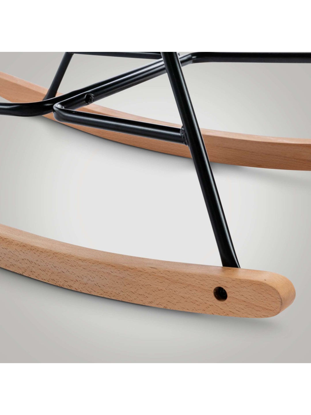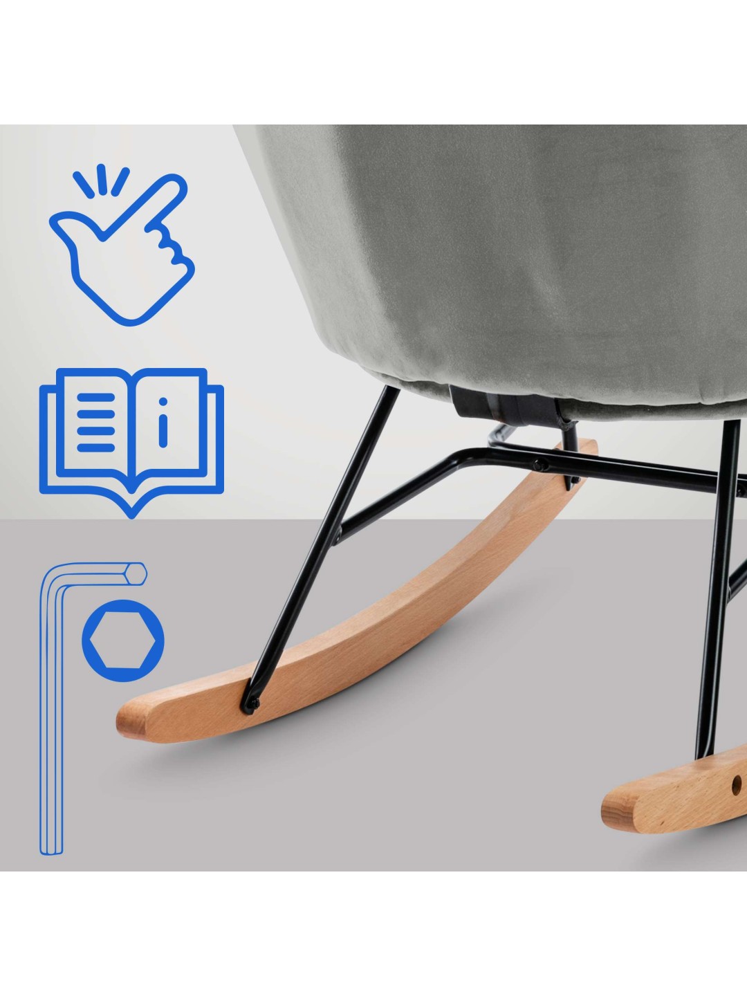 La mecedora Sanka es un asiento cómodo, sólido y al mismo tiempo elegante para el uso diario. Este moderno mueble encaja perfectamente en casi cualquier ambiente de salón. La cómoda carcasa del asiento acolchada con funda de terciopelo promete un agradable confort al sentarse. Los botones del cojín del respaldo añaden un toque moderno. Las elegantes guías de madera de haya están atornilladas a una estructura de metal lacada en negro de alta calidad, lo que confiere a la silla su gran estabilidad. ¡Un hermoso mueble completo que disfrutarás durante mucho tiempo!