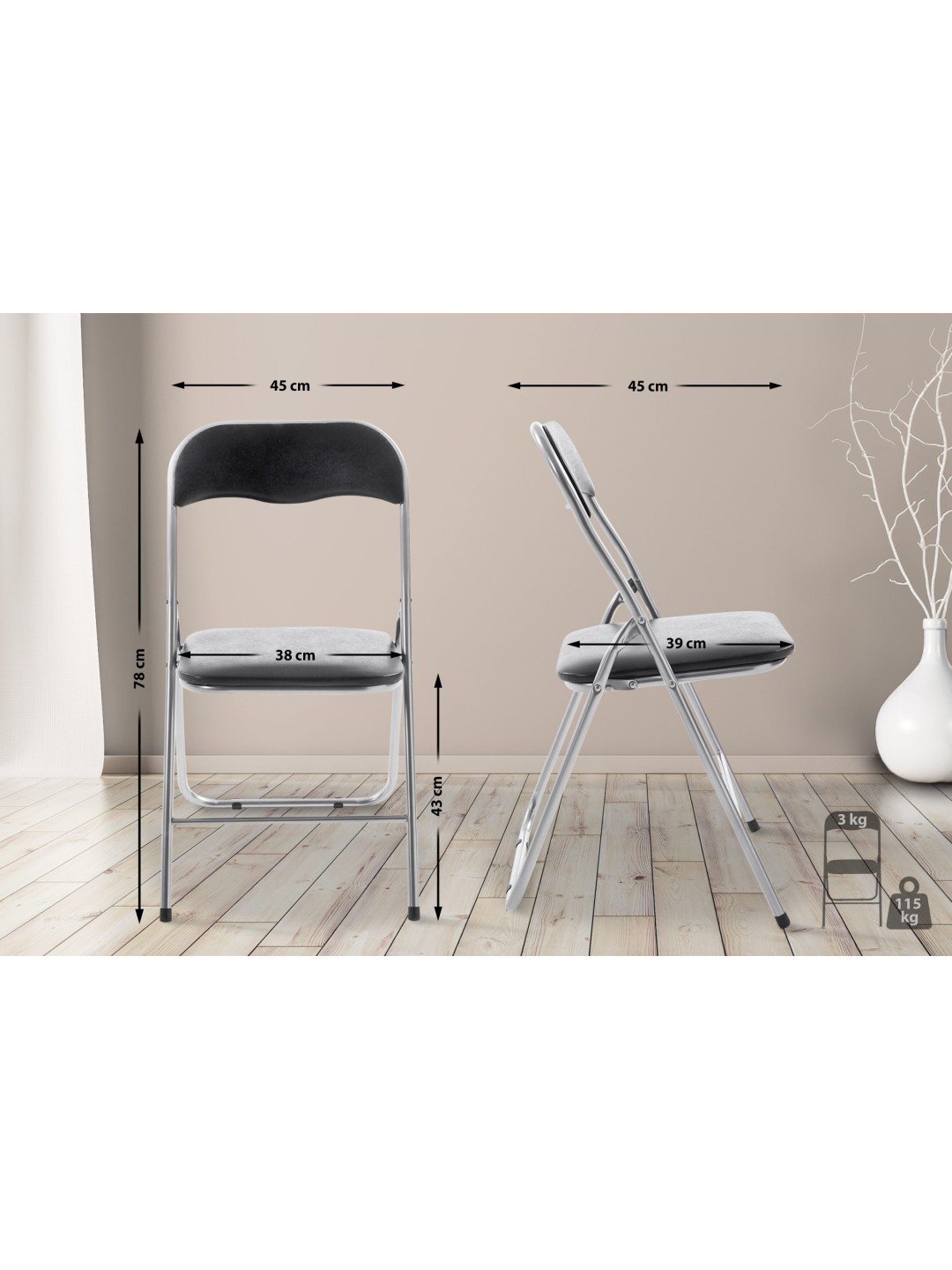 Silla plegable Félix, negro/plata