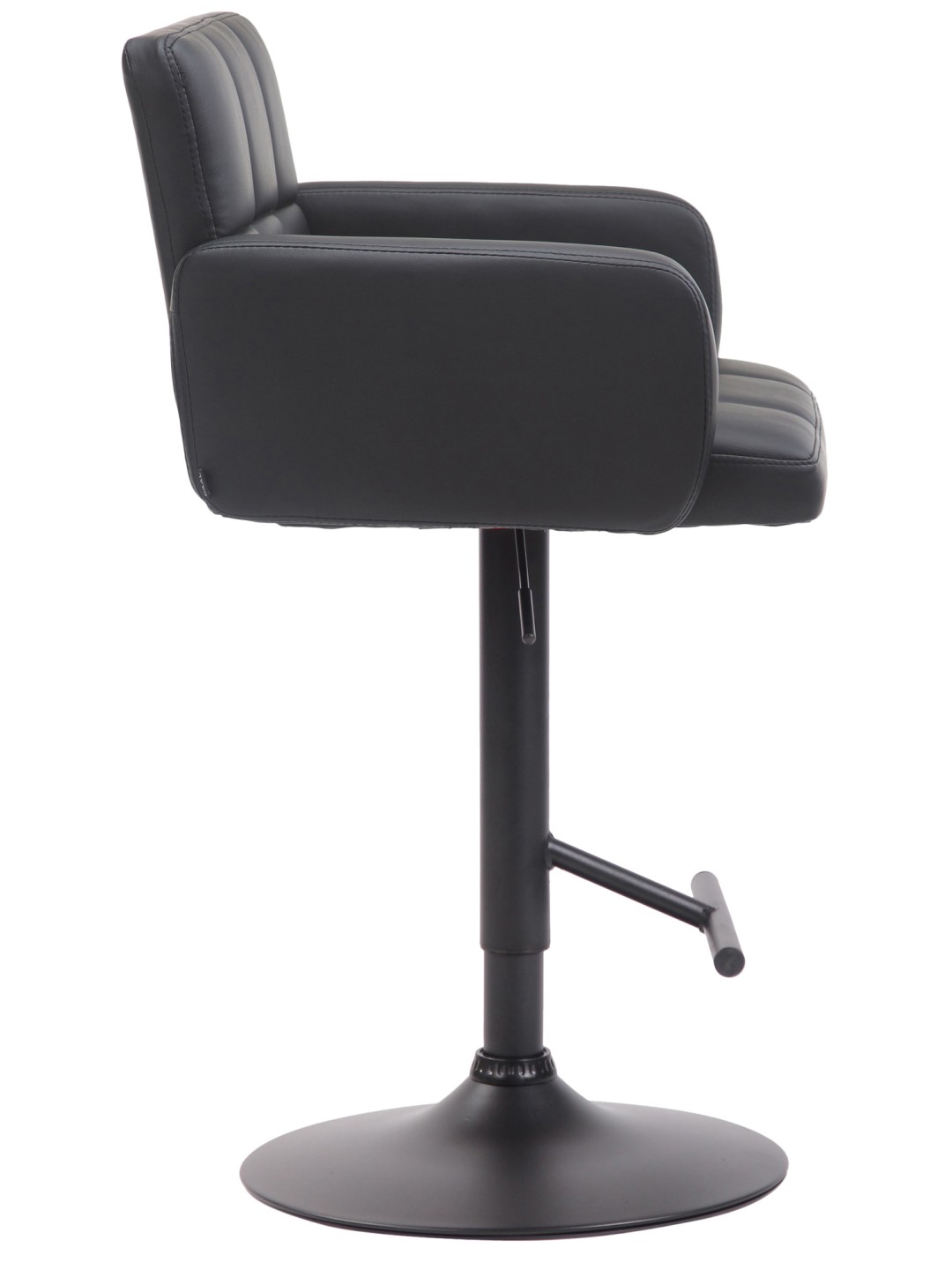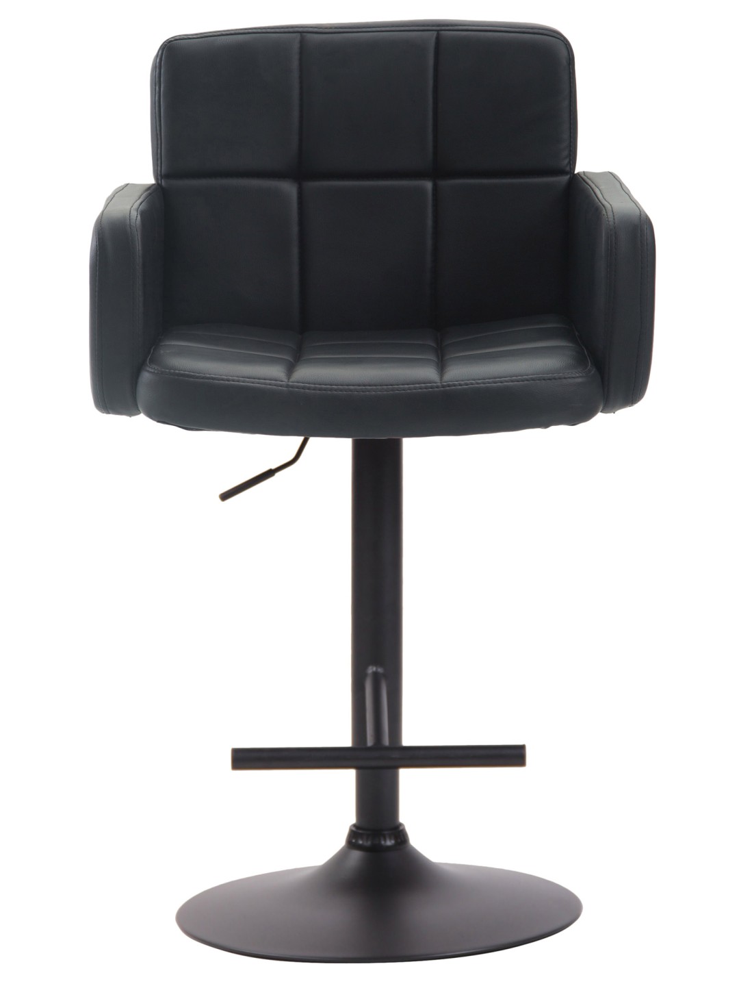 El taburete de bar de diseño Los Angeles es un taburete de bar cómodo y sólido para el uso diario. Los reposabrazos y el respaldo altos le permitirán sentarse cómodamente incluso durante largos períodos de tiempo. Además, el asiento tapizado en polipiel está cómodamente acolchado. En el centro de la estructura se encuentra un reposapiés que es muy importante para una postura correcta al sentarse. La altura del asiento se puede ajustar individualmente mediante una palanca situada en la parte inferior derecha del asiento. El asiento gira 360 grados para facilitar la entrada y salida.