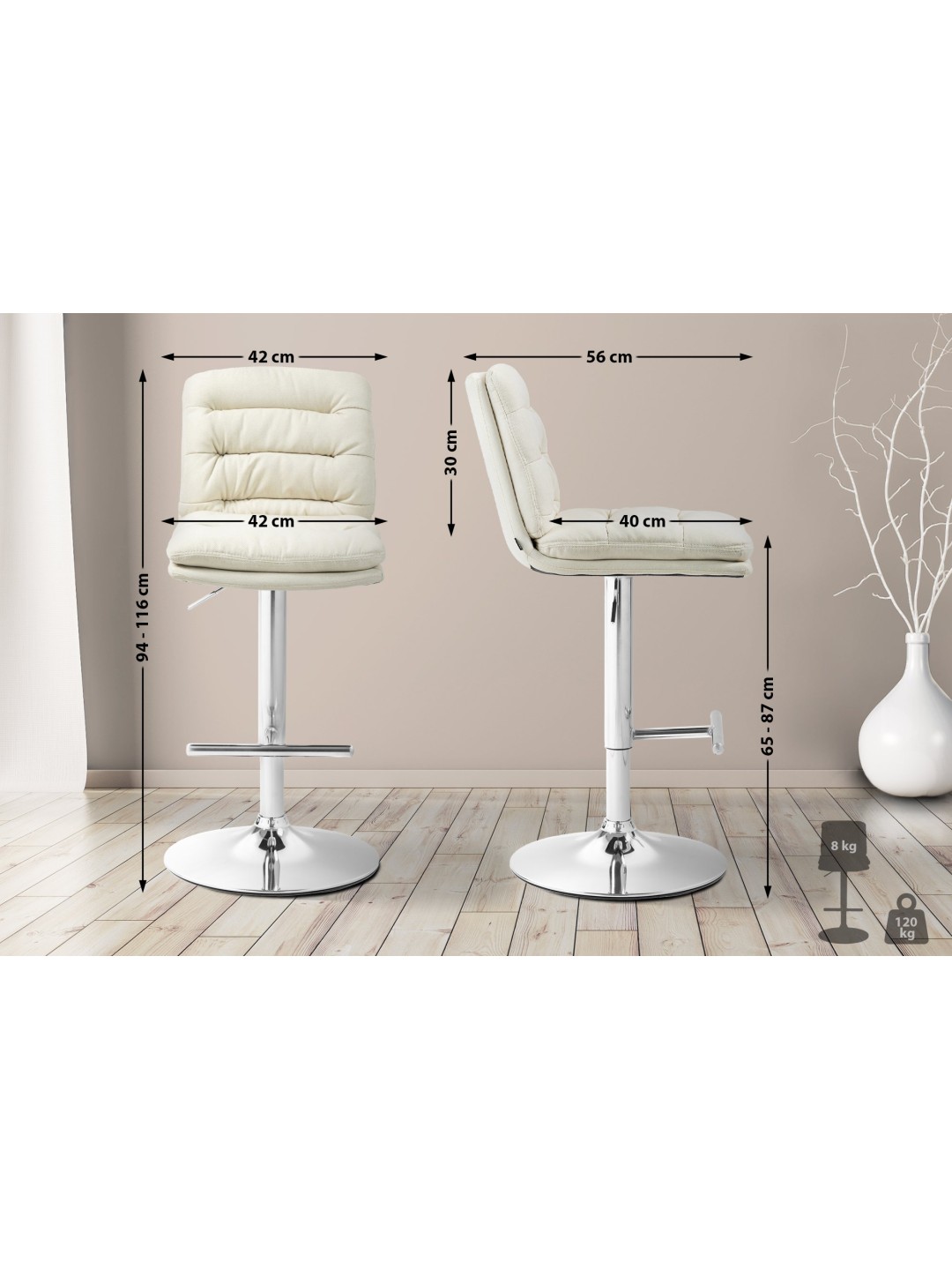 Juego de 2 taburetes de bar Damar tela cromo, crema
