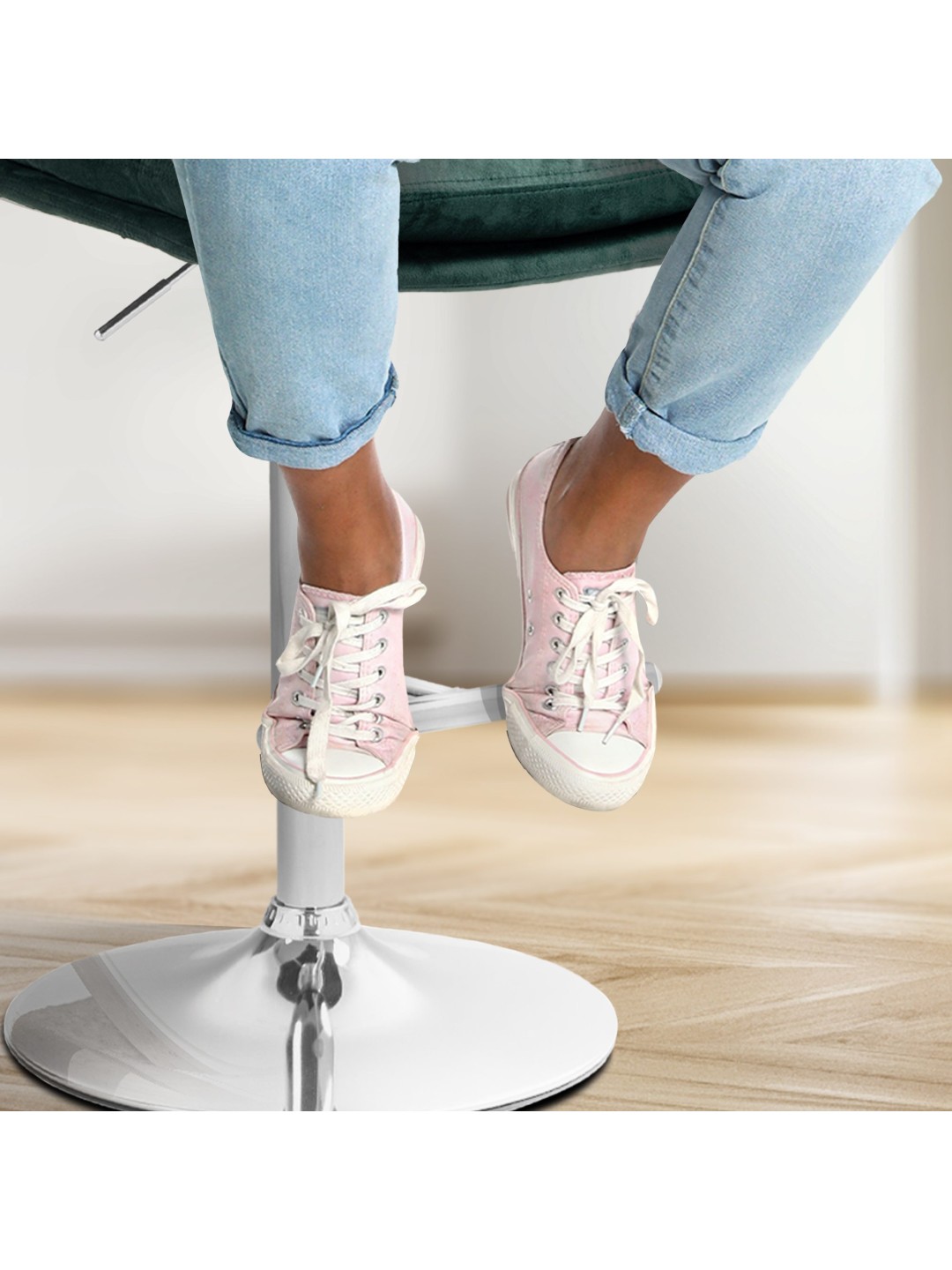 La estructura del taburete y la moderna funda le dan al taburete una apariencia elegante. El asiento está tapizado en elegante terciopelo. La estructura de metal es ajustable en altura y la función de rotación de 360 grados garantiza una gran libertad de movimiento.