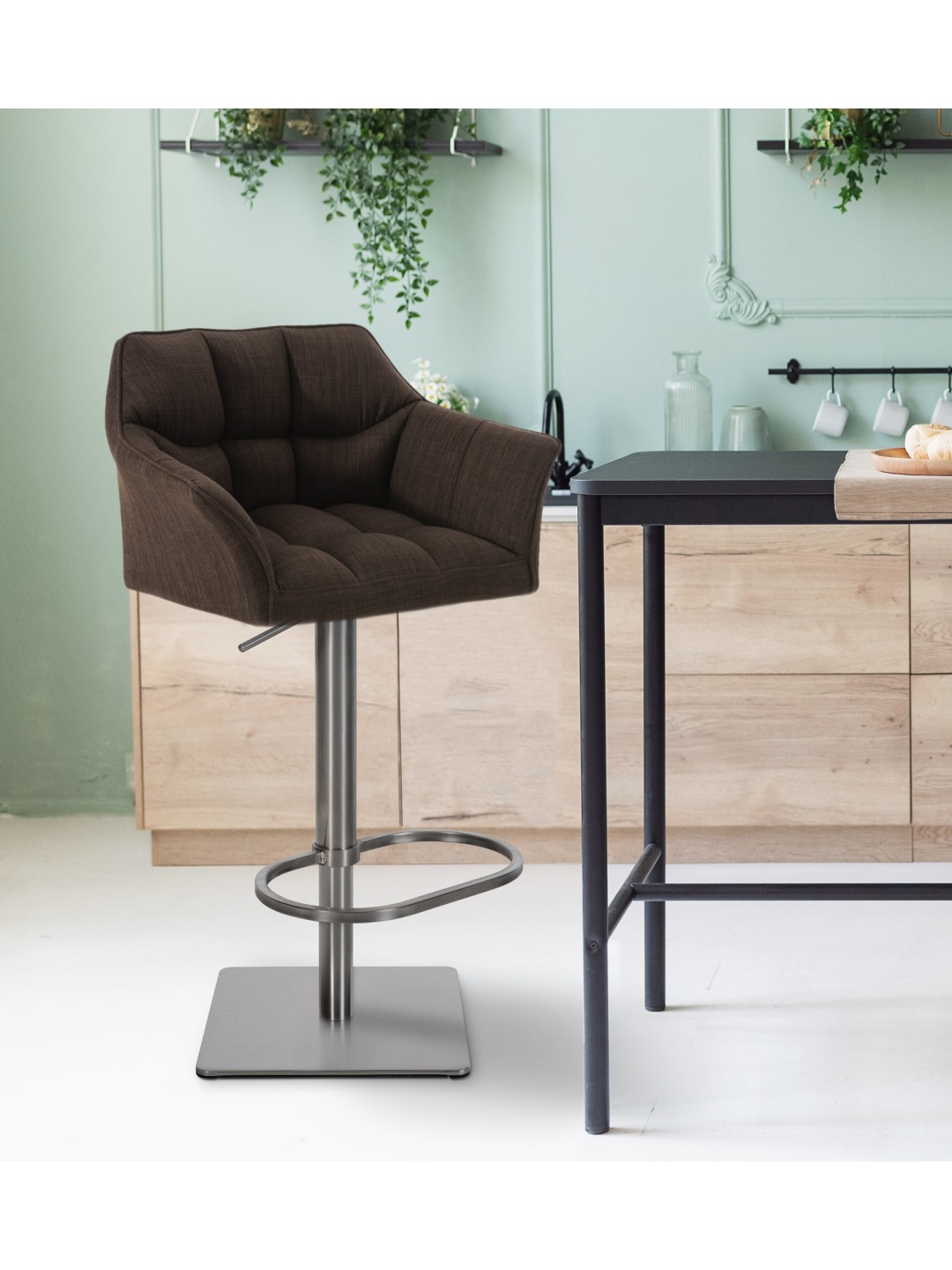 Juego de 2 taburetes de bar Damaso tejido acero inoxidable, marrón