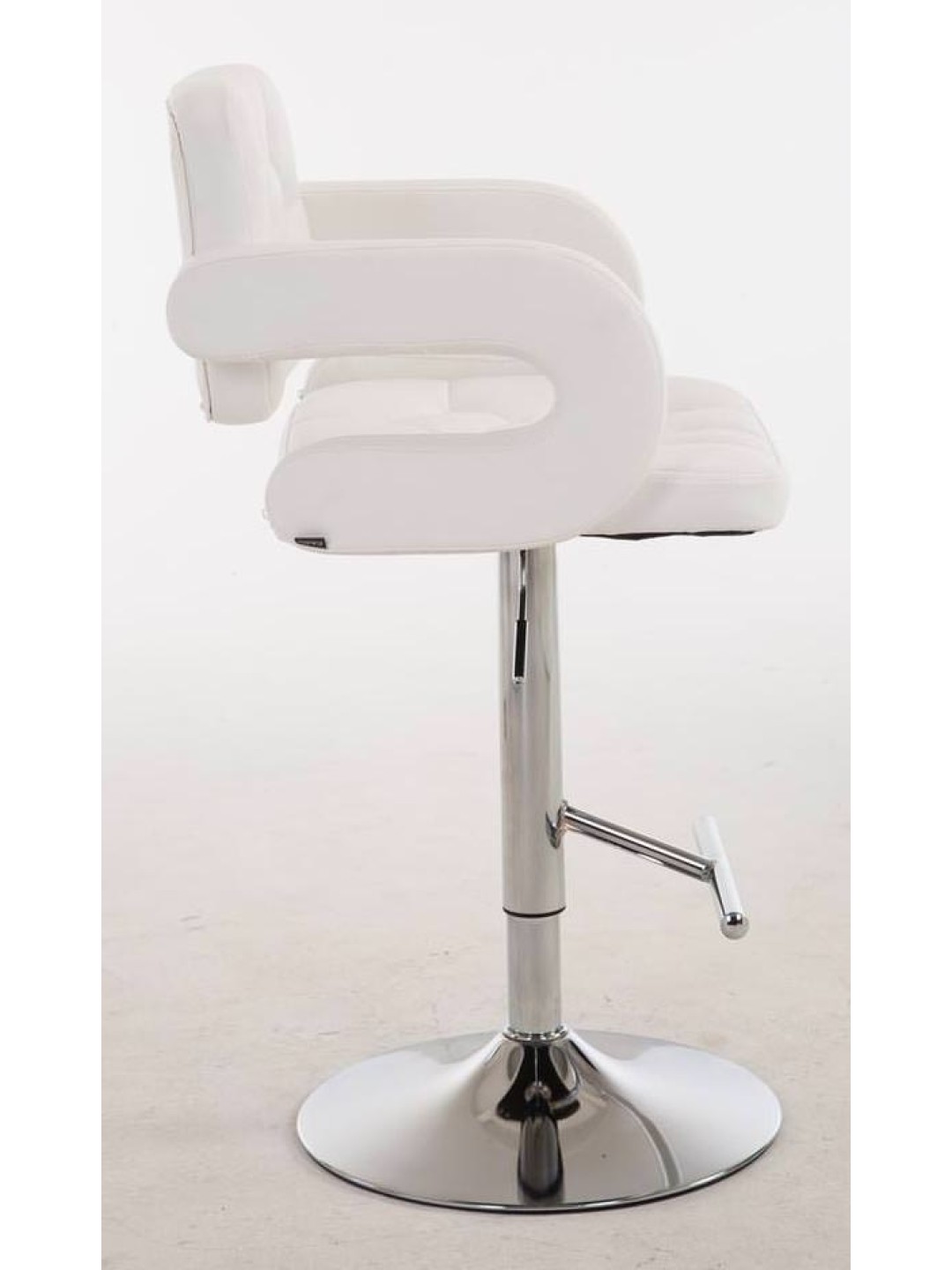 El taburete de bar tiene un asiento en forma de sillón con revestimiento de piel sintética. El asiento está acolchado de forma gruesa y contribuye a un asiento cómodo. El asiento se puede girar 360 grados y, por lo tanto, se puede ajustar a cualquier posición de asiento deseada.