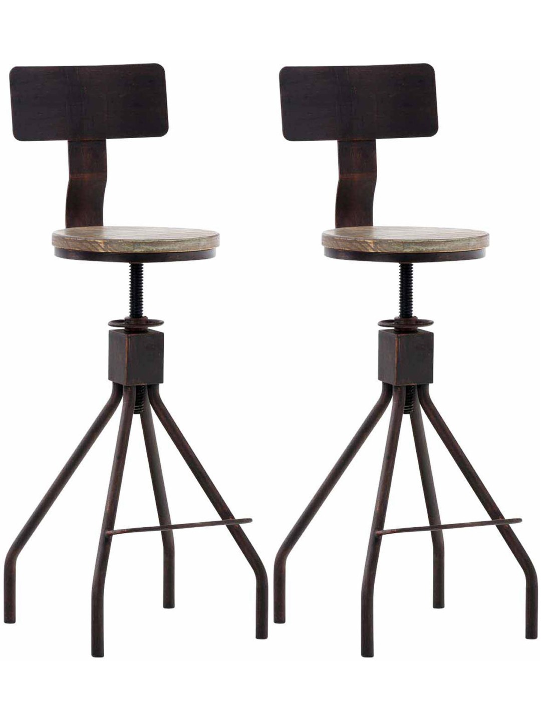 Los ​​asientos redondos fabricados en madera de pino son muy cómodos. Incluso sin tapizado, este taburete alto ofrece el máximo confort gracias al respaldo y al ajuste individual de altura. El reposapiés proporciona comodidad adicional. El robusto marco está hecho de metal y garantiza la máxima estabilidad y estabilidad.