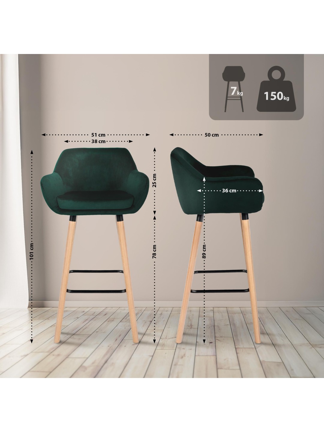 Este juego, compuesto por dos taburetes de bar Grant, es una opción ideal para el bar, la cocina o el comedor de tu hogar moderno. Dado que las fundas de terciopelo de los taburetes están disponibles en diferentes colores, estos taburetes se pueden integrar perfectamente en su hogar.