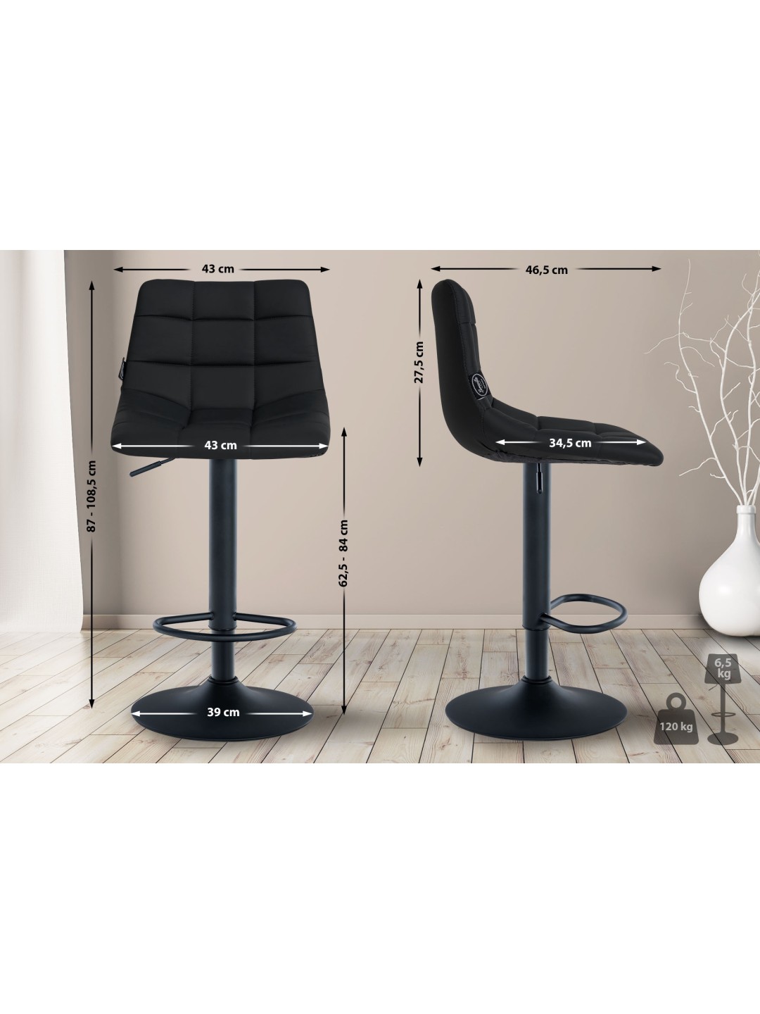La funda del taburete está hecha de suave piel sintética y presenta un patrón acolchado clásico. La robusta estructura de metal del taburete está disponible en cromo o negro y garantiza una gran estabilidad y longevidad. El diseño minimalista y moderno del taburete encaja perfectamente en cualquier interior. El taburete de la cocina es fácil de montar y de limpiar. Para la limpieza, basta con un paño de algodón húmedo para eliminar la suciedad leve.