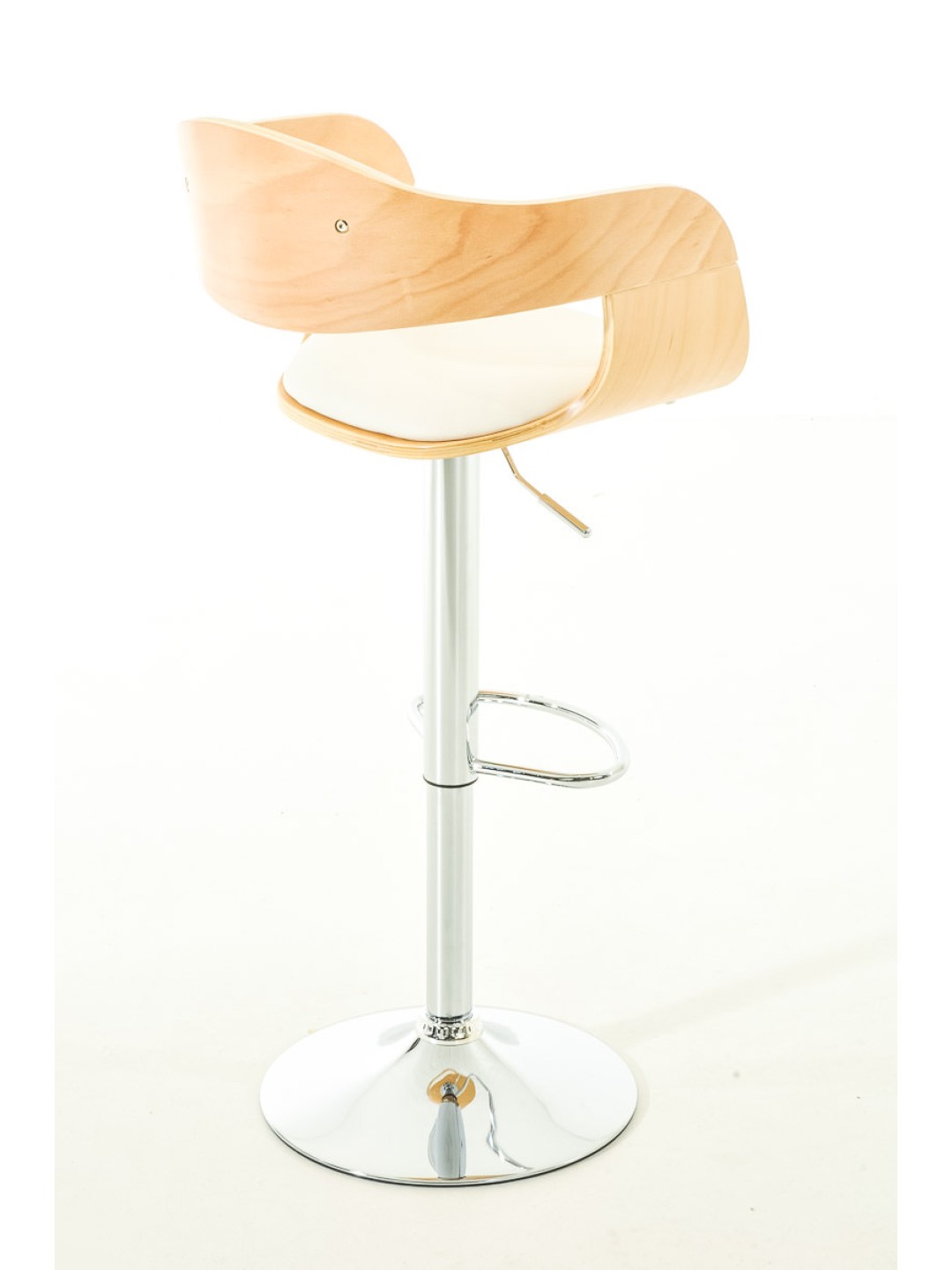 Este taburete de bar de diseño le da a cada mostrador un aspecto exclusivo. No sólo convence por sus excelentes propiedades de asiento, sino también por su moderno diseño. El asiento y el respaldo del asiento de madera están acolchados y revestidos con una funda de piel sintética de calidad. La estructura está hecha de metal con aspecto cromado y se puede limpiar rápida y fácilmente.