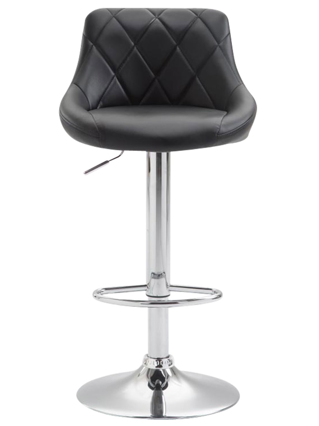 Este taburete impresiona por su diseño elegante. El asiento está tapizado con cuero artificial y tiene elaboradas costuras decorativas. Utilizando el elevador de gas, este modelo se puede ajustar infinitamente a la altura deseada, lo que lo hace ideal para cualquier altura de mostrador. El reposapiés, que garantiza un muy buen confort al sentarse, se puede ajustar en sincronía con la altura del asiento. El asiento se puede girar 360° con el reposapiés.