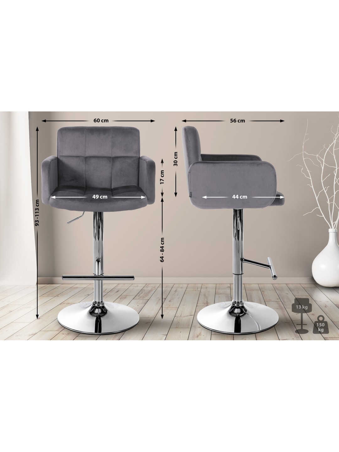 Las estables estructuras de cuatro patas garantizan un soporte seguro, mientras que los anillos de protección del suelo protegen de forma fiable los suelos delicados contra arañazos.