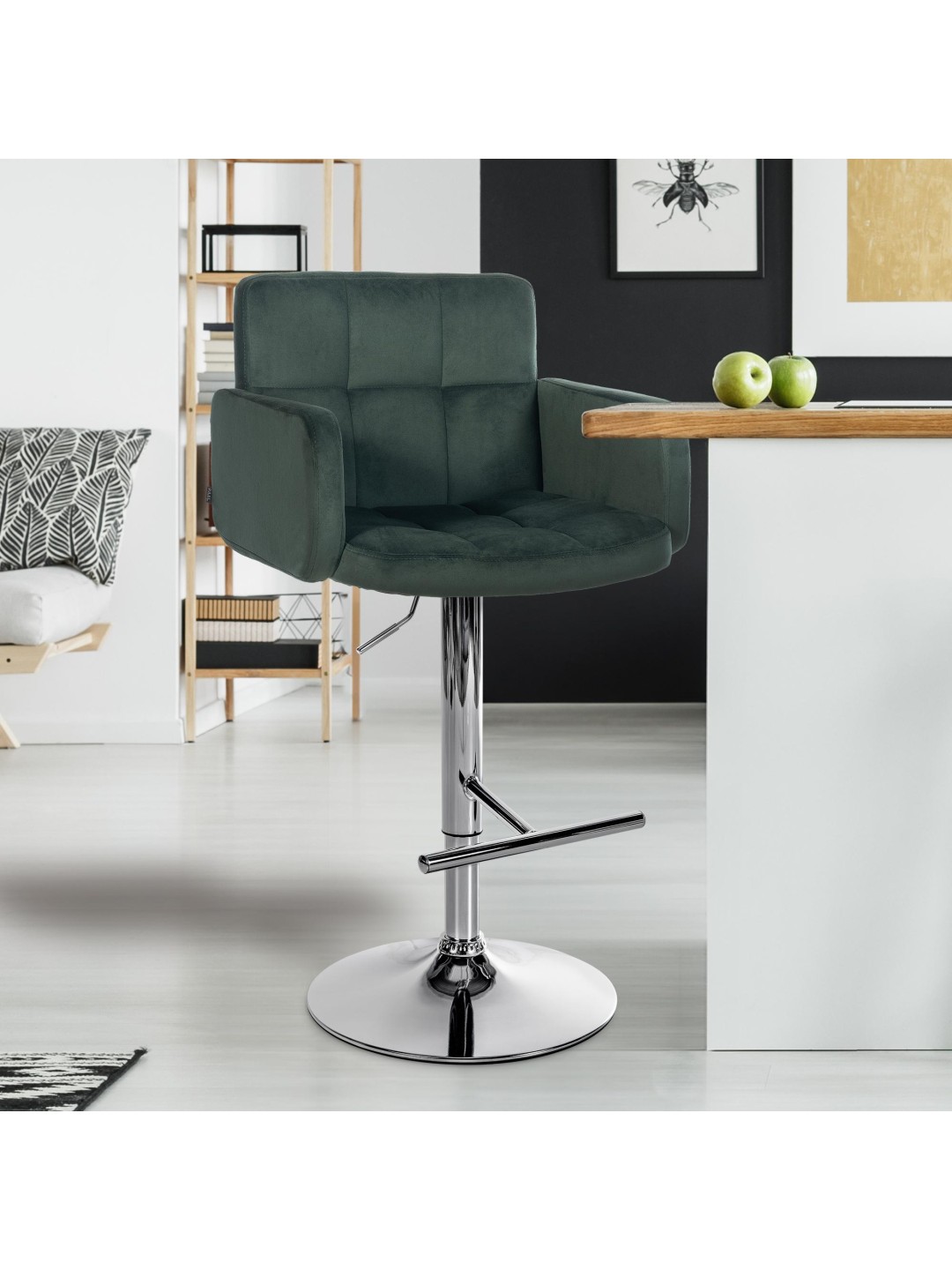 Juego de 2 taburetes de bar Los Angeles terciopelo cromado, verde oscuro