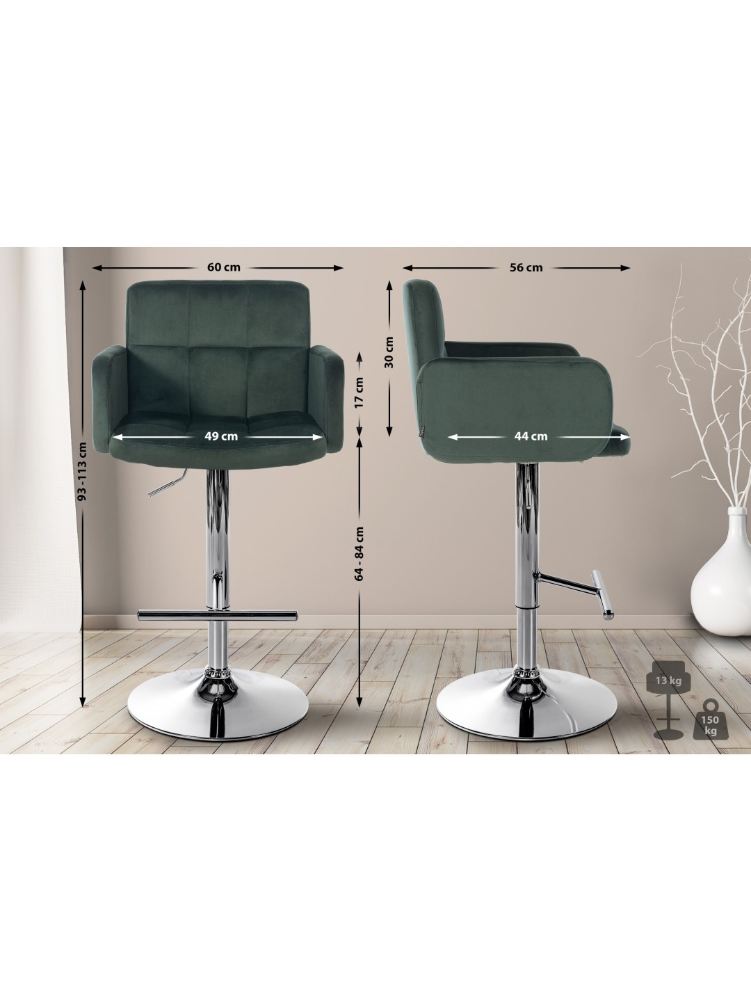 Las estables estructuras de cuatro patas garantizan un soporte seguro, mientras que los anillos de protección del suelo protegen de forma fiable los suelos delicados contra arañazos.