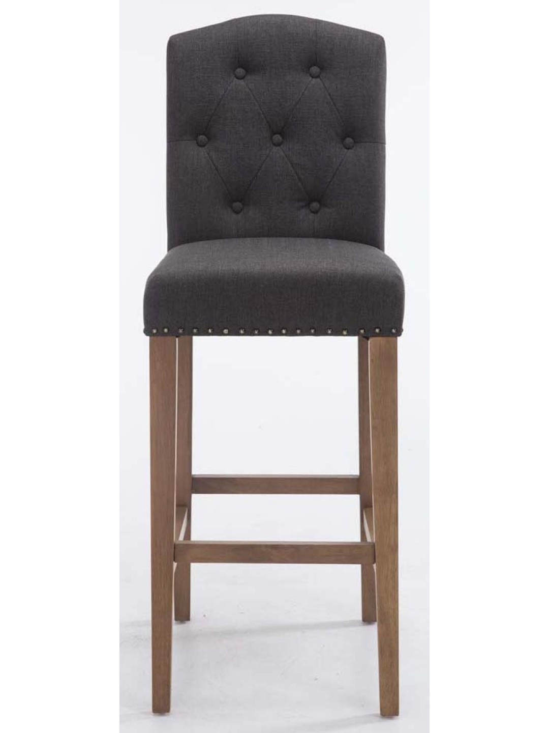 El taburete de bar Louise tiene una funda de tela y un acolchado grueso. En el asiento hay botones decorativos de cobre que recorren la costura. El respaldo alto ofrece un buen apoyo a la espalda. La estructura de 4 pies de altura está hecha de madera de caucho y confiere al taburete de bar una gran estabilidad. Los puntales de madera en el centro de la estructura se pueden utilizar como reposapiés y ofrecen una buena sensación de estar sentado incluso durante un período de tiempo más largo. Los protectores de suelo debajo de los pies evitan antiestéticos arañazos en el suelo, por lo que mover el taburete de la barra no será un problema. La suciedad ligera se puede eliminar con un paño de algodón. El taburete de bar está disponible en dos colores de madera y en 4 colores de asiento diferentes.