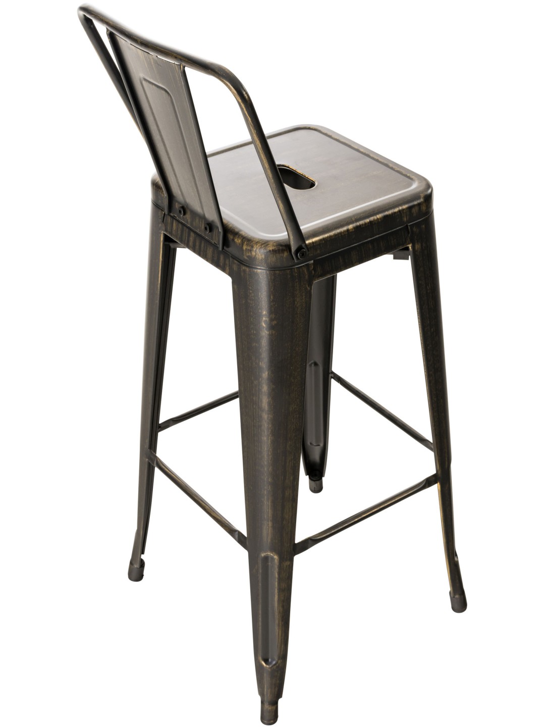 Este taburete de bar de metal con recubrimiento en polvo es especialmente estable. Tanto entre las piernas como debajo del asiento hay travesaños que garantizan una gran estabilidad; los primeros también sirven como cómodo reposapiés.