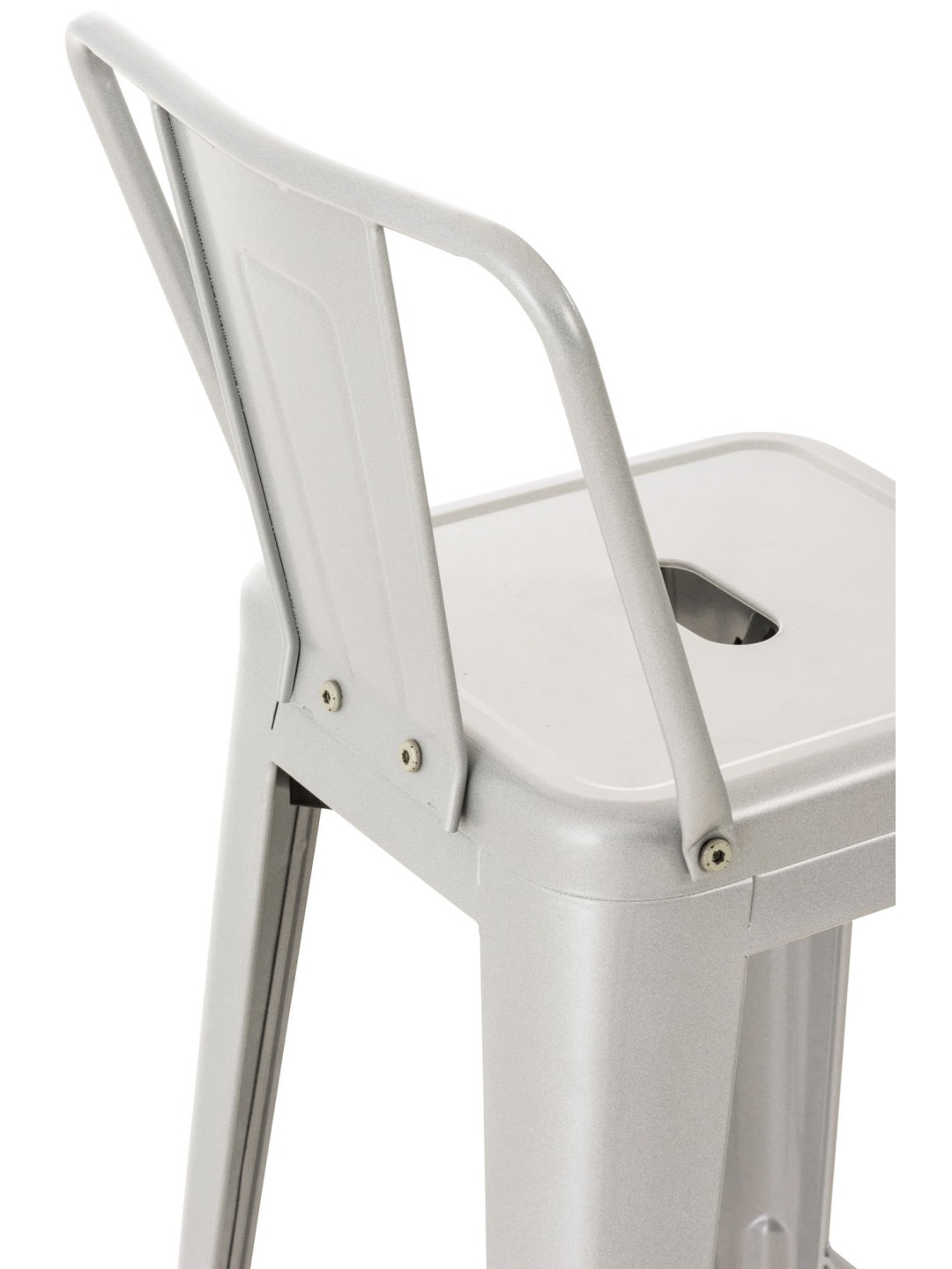 Este taburete de bar de metal con recubrimiento en polvo es especialmente estable. Tanto entre las piernas como debajo del asiento hay travesaños que garantizan una gran estabilidad; los primeros también sirven como cómodo reposapiés.