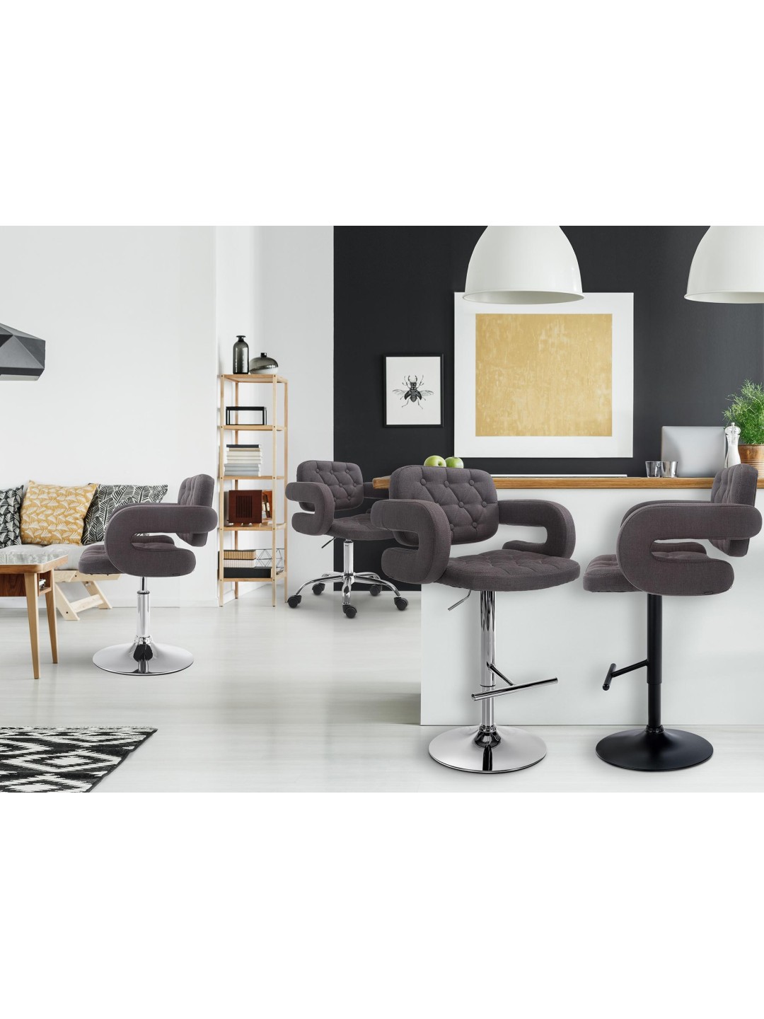 El taburete de bar Dublin encarna la elegancia atemporal y el confort moderno. Su funda de tela acolchada no sólo le da un toque lujoso, sino que también ofrece una sensación de comodidad al sentarse.