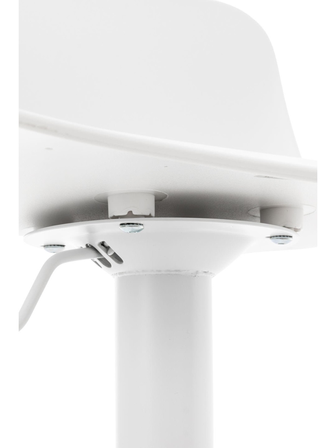 Debajo del pie de trompeta se encuentra un protector de suelo que protege el suelo de arañazos antiestéticos. La suciedad se puede eliminar fácilmente con un paño de algodón húmedo, por lo que su cuidado es especialmente sencillo. El taburete de mostrador está disponible en blanco y negro.