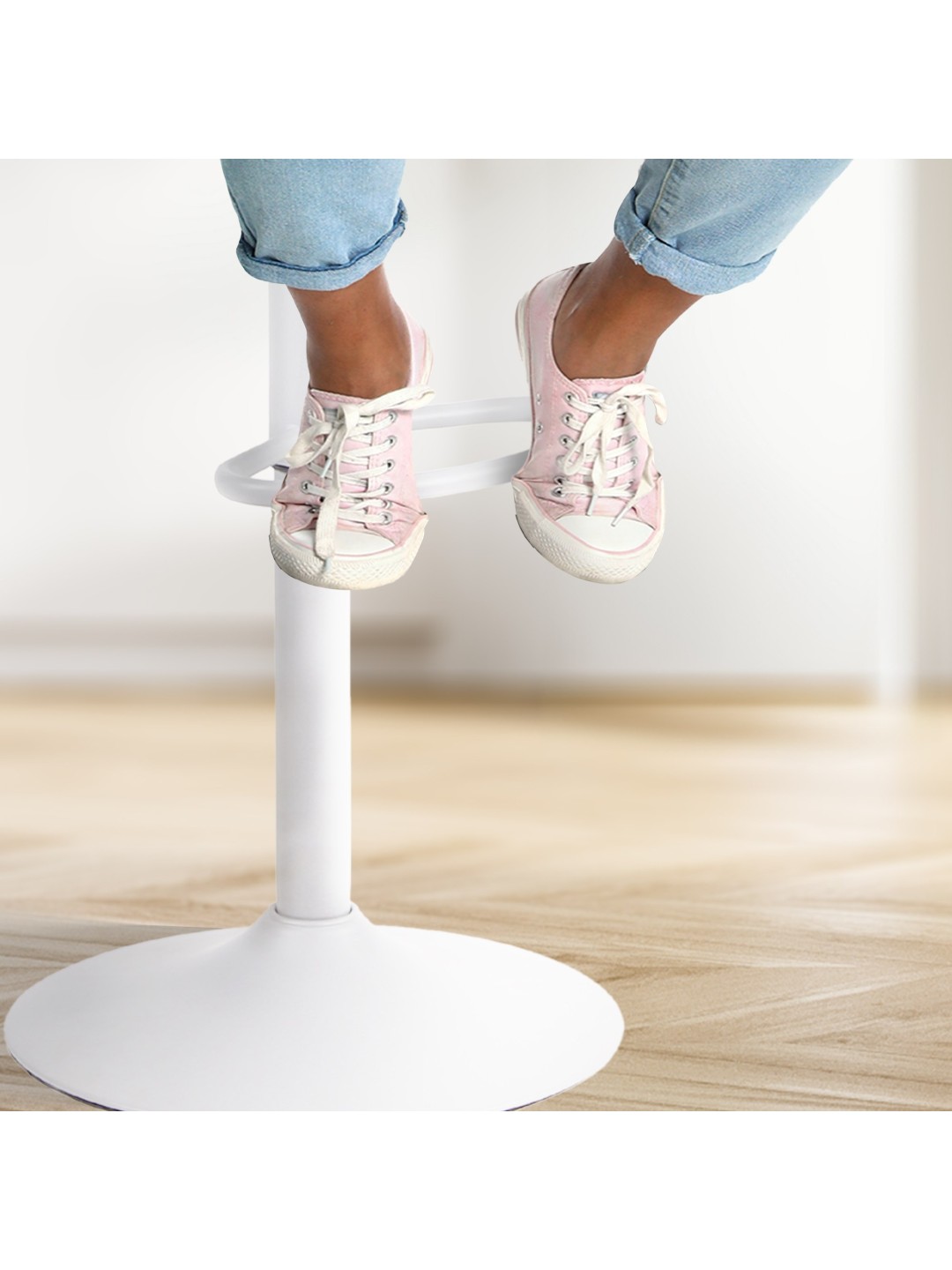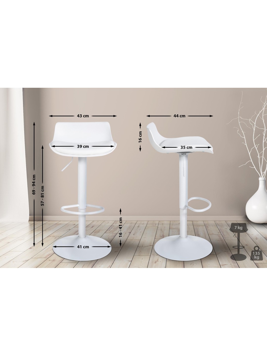 Este taburete de bar impresiona por su diseño inteligente. Se ha reducido a lo esencial sin comprometer la comodidad del asiento. La carcasa del asiento curvada está hecha de cuero sintético y ofrece una sensación de comodidad al sentarse. El taburete del mostrador se puede ajustar en altura mediante un elevador de gas y se puede girar 360 grados. Un reposapiés que se puede ajustar sincrónicamente con el asiento le permitirá sentarse cómodamente durante varias horas. El diseño se completa con la base de metal en forma de trompeta y garantiza la estabilidad del taburete de bar. El suelo está protegido por un protector de suelo para evitar arañazos y daños.