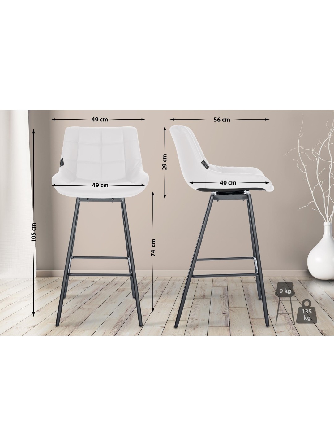 Este juego compuesto por cuatro taburetes de bar Weston convence por su diseño moderno y su gran comodidad. Con una altura de asiento de 77 centímetros, las sillas de bar son ideales para la mayoría de mostradores.