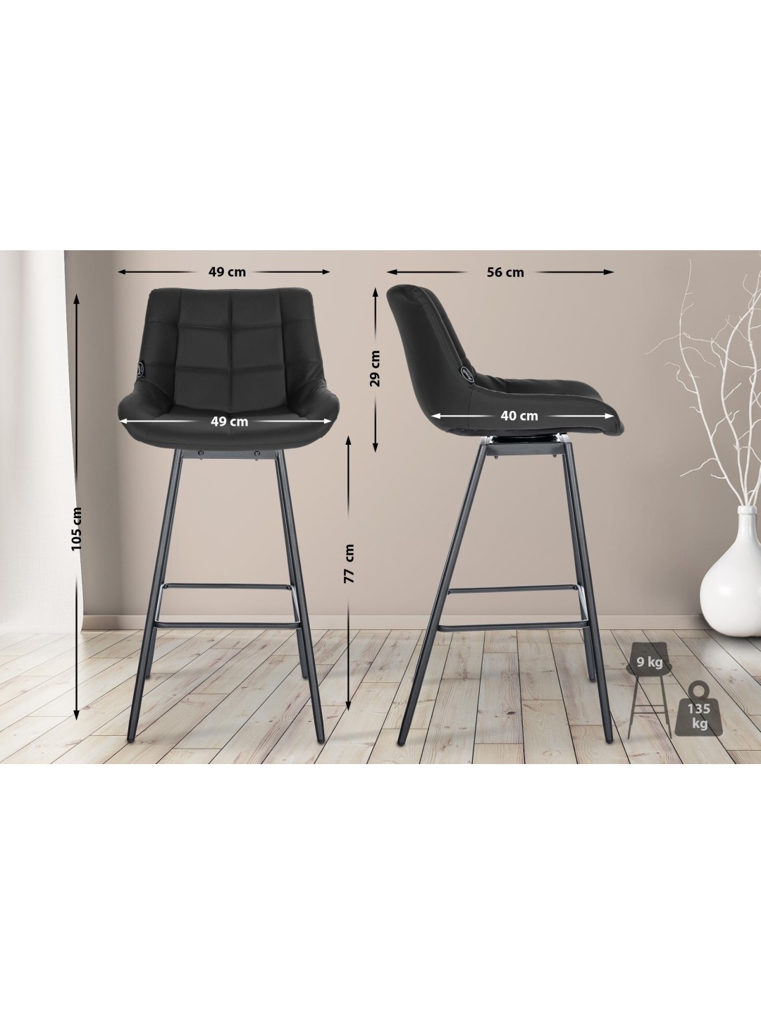 Este juego compuesto por cuatro taburetes de bar Weston convence por su diseño moderno y su gran comodidad. Con una altura de asiento de 77 centímetros, las sillas de bar son ideales para la mayoría de mostradores.