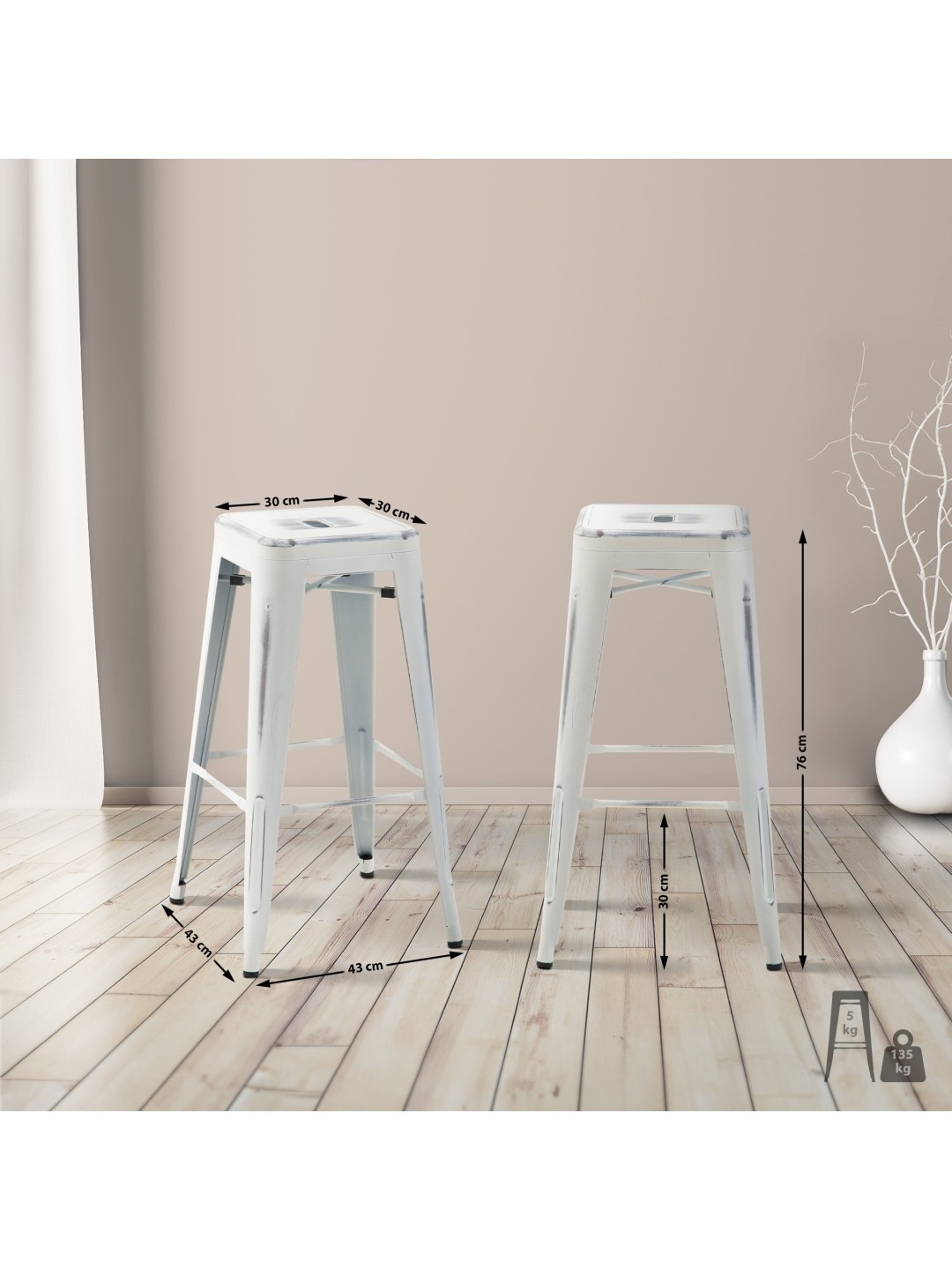 Juego de 4 taburetes de bar Joshua, blanco antiguo