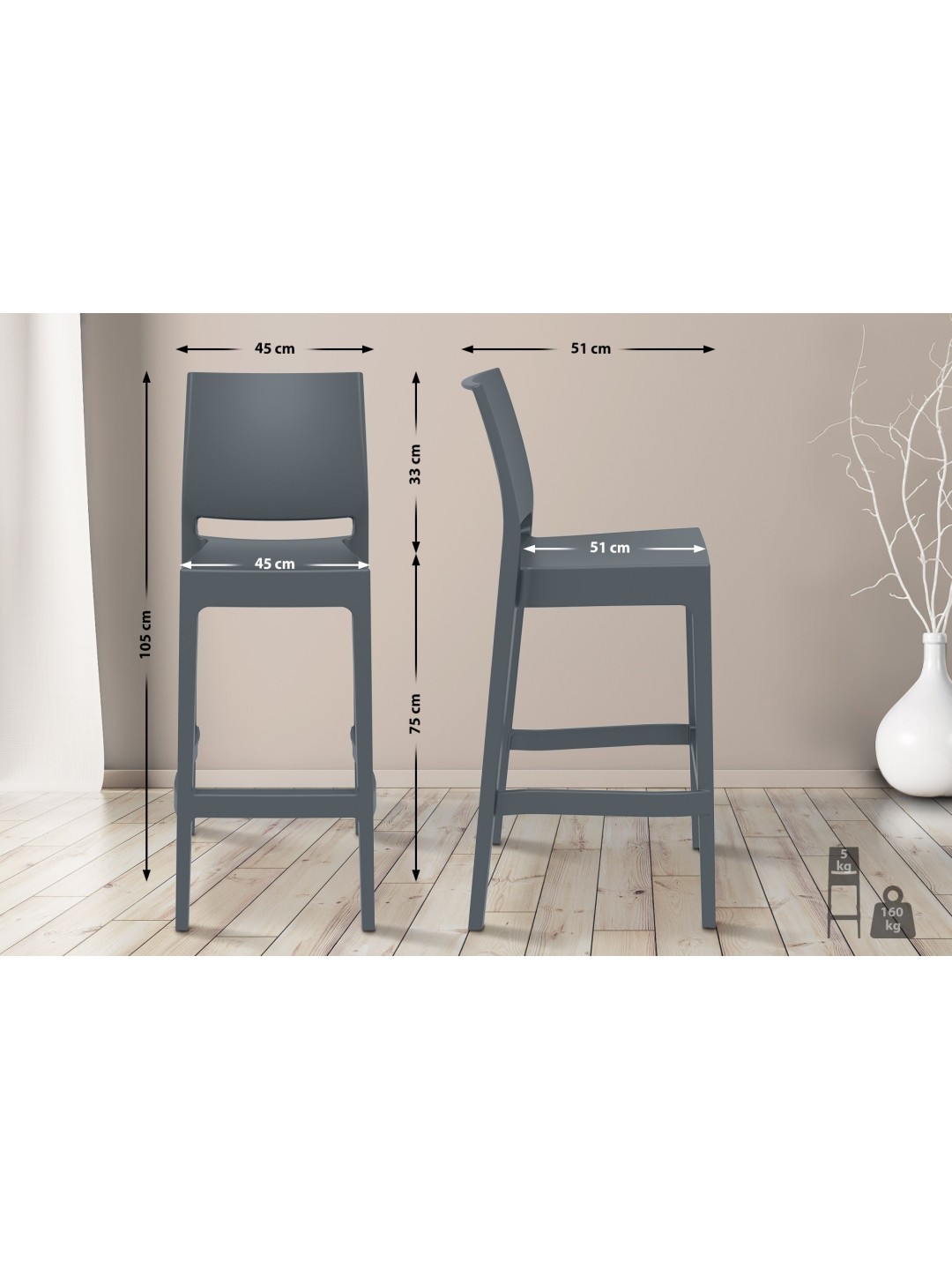 Este juego de taburetes de bar convence por su diseño sencillo y sus muchas características funcionales. La altura del asiento de 75 cm en combinación con el respaldo crea una sensación de comodidad al sentarse. Esta comodidad se completa con el reposapiés. Gracias a su composición material de polipropileno reforzado con fibra de vidrio, estos taburetes son aptos para uso interior y exterior. Además, los taburetes de la barra son absolutamente resistentes a la intemperie y a las manchas, la suciedad y la humedad. Los taburetes de bar también son resistentes a los rayos UV; Incluso la luz solar intensa y frecuente no hace que el plástico se ponga amarillo o se decolore; la profundidad del color se conserva durante mucho tiempo. Si necesitas guardar a Maya, estos taburetes también son apilables. ¡Un verdadero atractivo con un diseño sencillo!