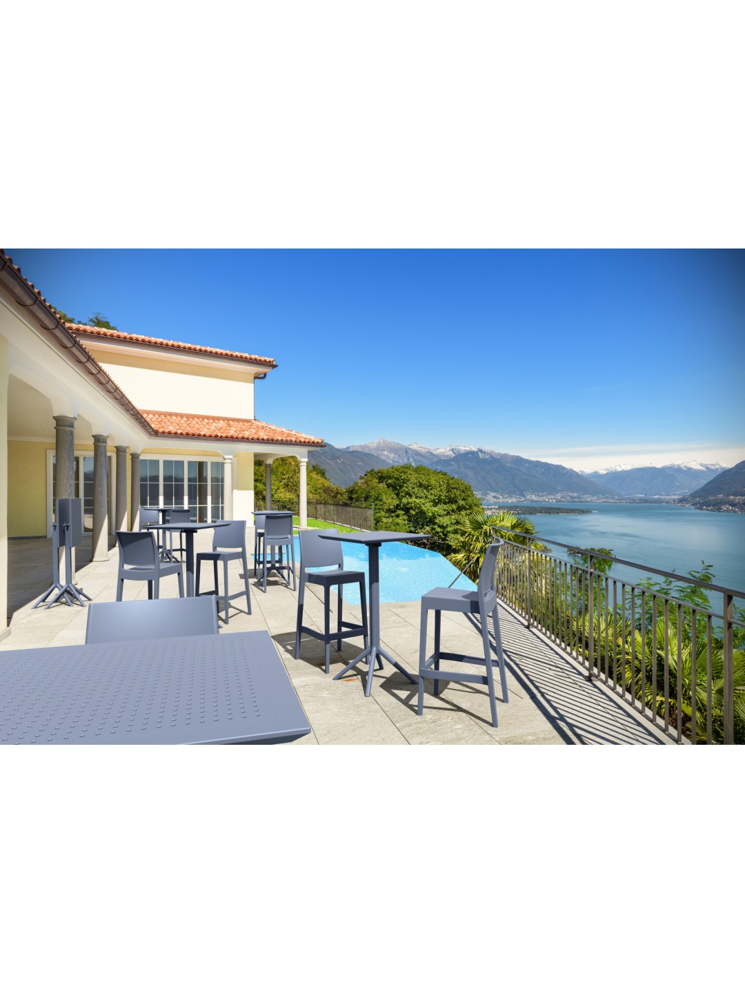Juego de 4 taburetes de bar Maya, gris oscuro