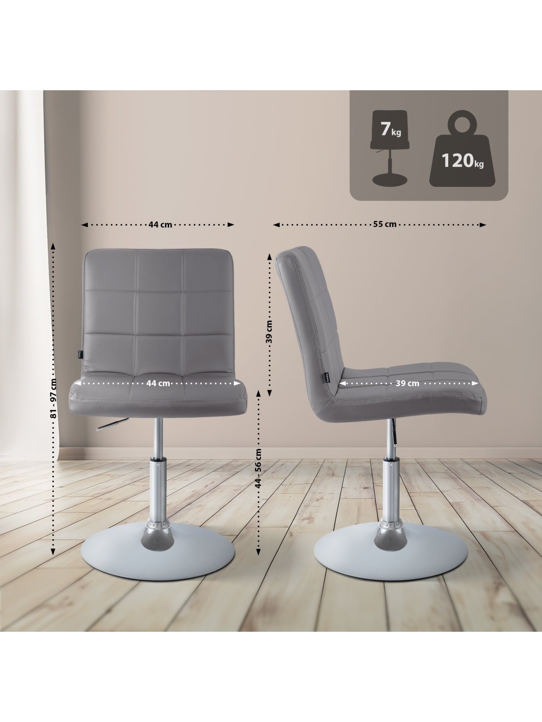 El asiento acolchado está cubierto con cuero artificial duradero y de alta calidad. Las costuras decorativas integradas realzan aún más el aspecto. La estructura estable está hecha de metal con aspecto cromado.