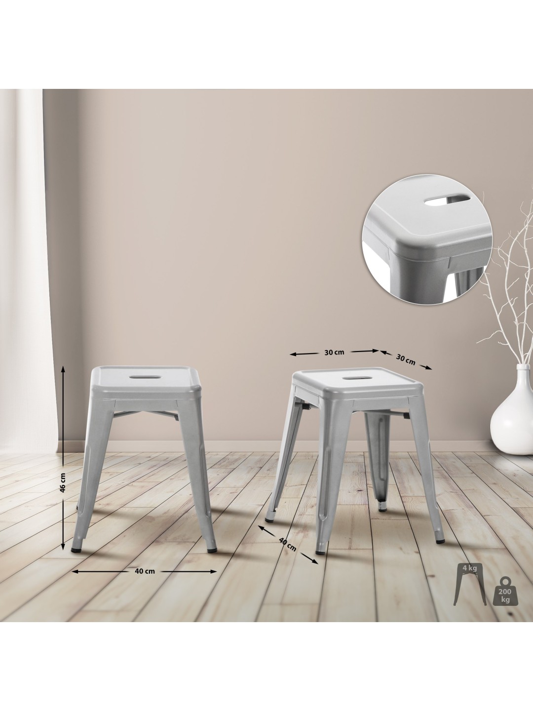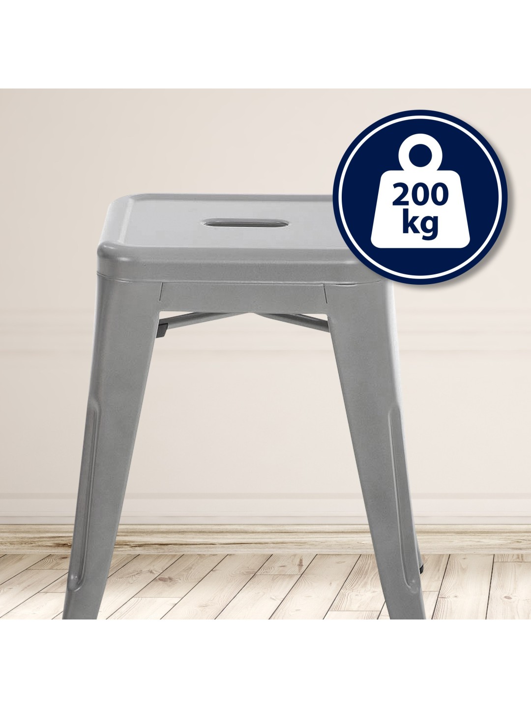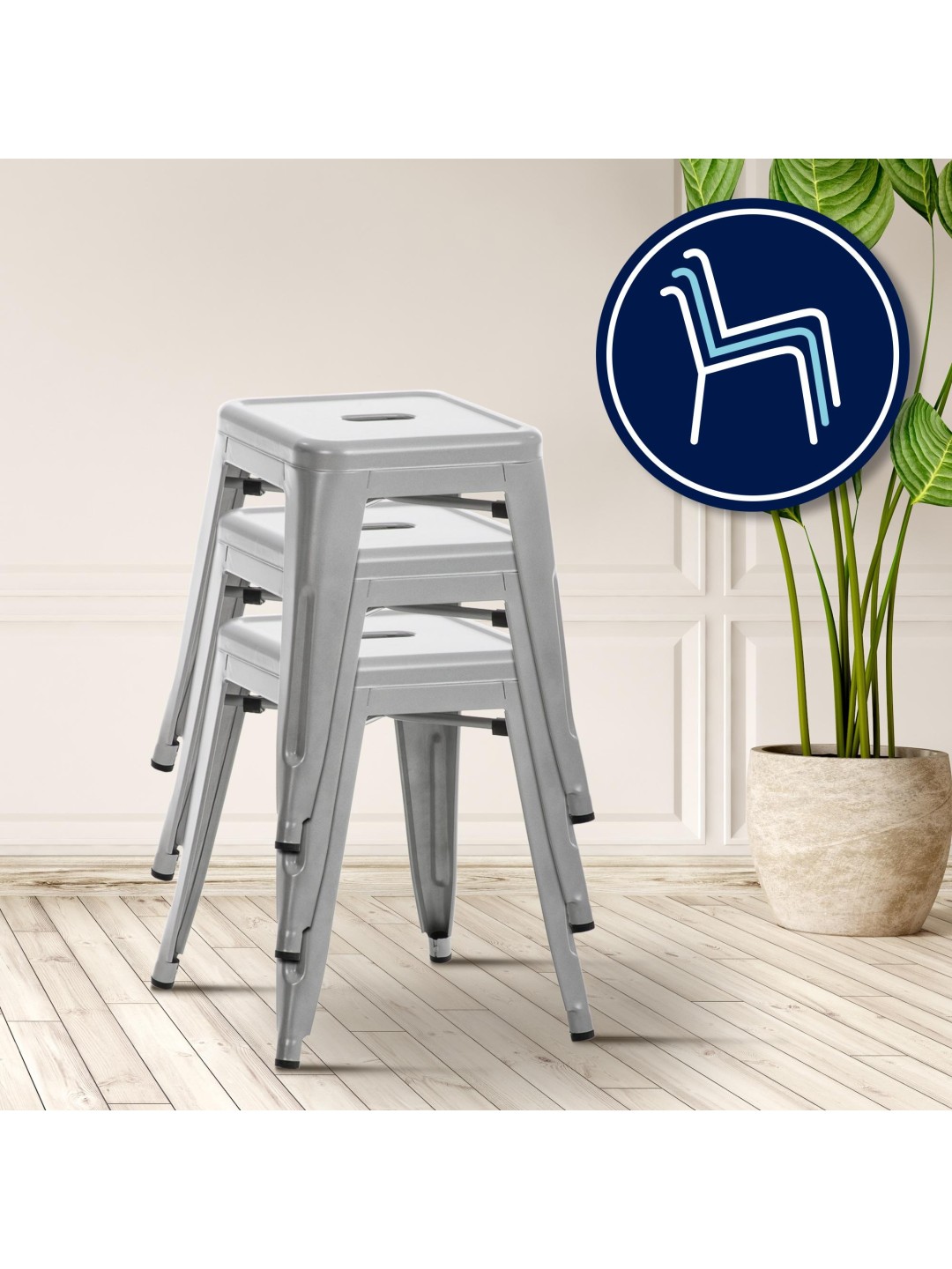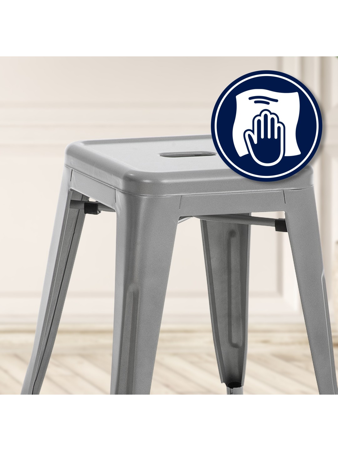 Gracias a su construcción apilable, el taburete se puede guardar para ahorrar espacio cuando no esté en uso. Esto hace que el taburete apilable sea perfecto para espacios pequeños o uso flexible.