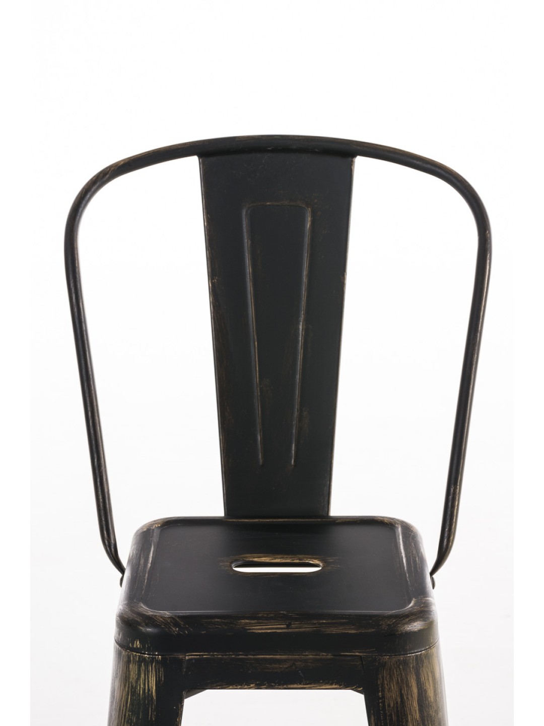 Este taburete de bar hecho de metal con recubrimiento en polvo siempre muestra una verdadera estabilidad. Hay barras transversales entre las piernas y debajo del asiento, que garantizan un alto nivel de estabilidad; las primeras también sirven como un cómodo reposapiés.