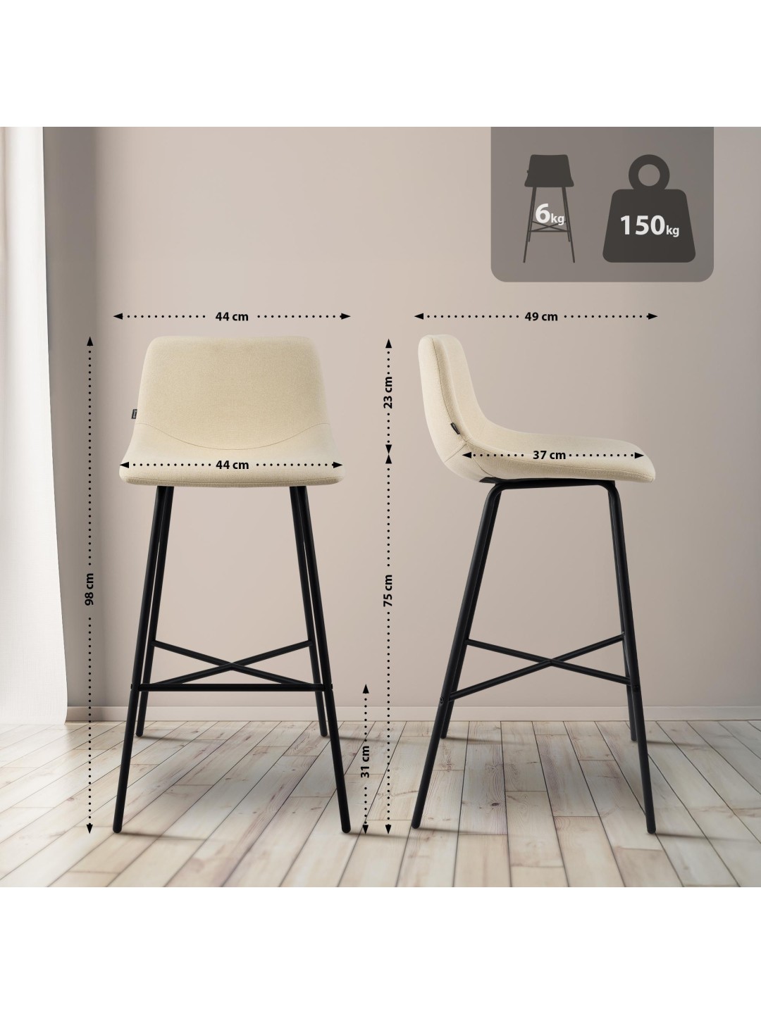 Taburete de bar Altona tela, crema