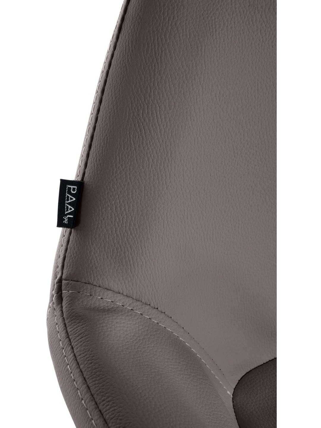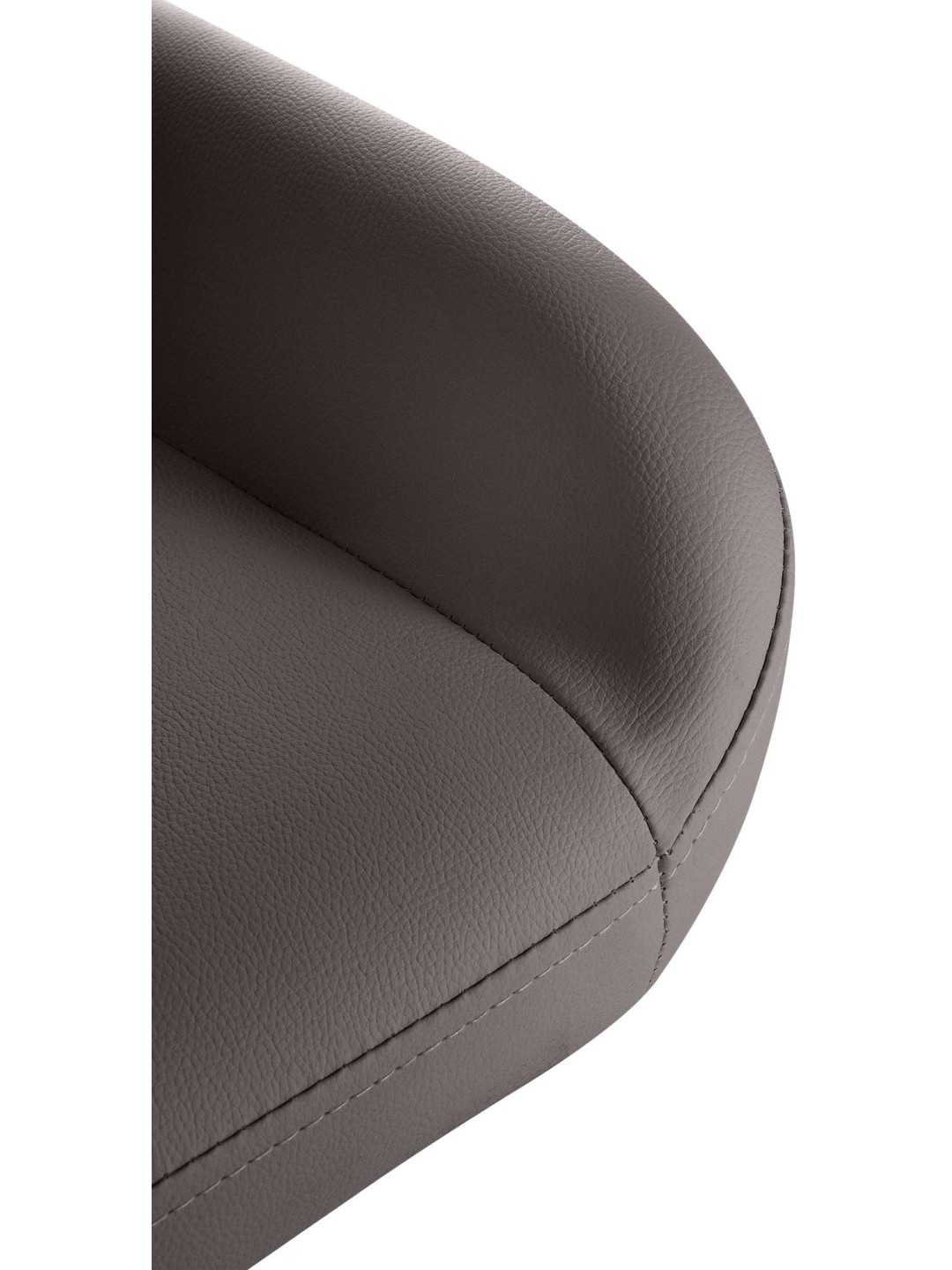 El asiento y el respaldo están tapizados con una funda de piel sintética de alta calidad y ofrecen un alto nivel de comodidad gracias a su acolchado. Un reposapiés integrado favorece el asiento en posición erguida. La altura del asiento se puede ajustar continuamente mediante un elevador de gas. El asiento se puede girar 360°, lo que permite una flexibilidad adicional.