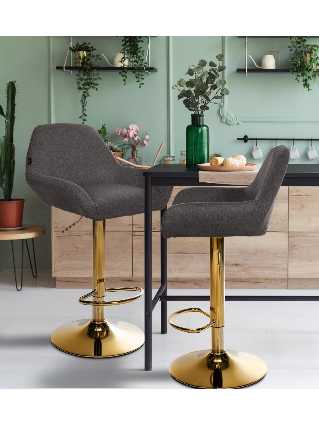 Taburete de bar Braga tapizado en tela con estructura dorada