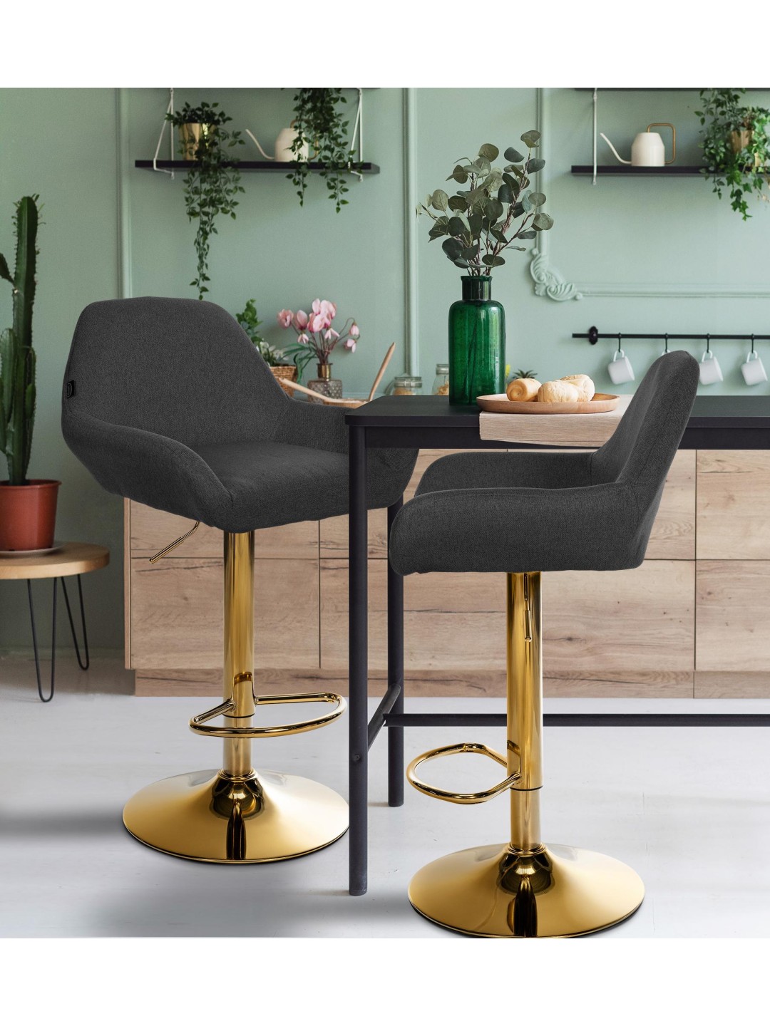Taburete de bar Braga Tela dorada, negro