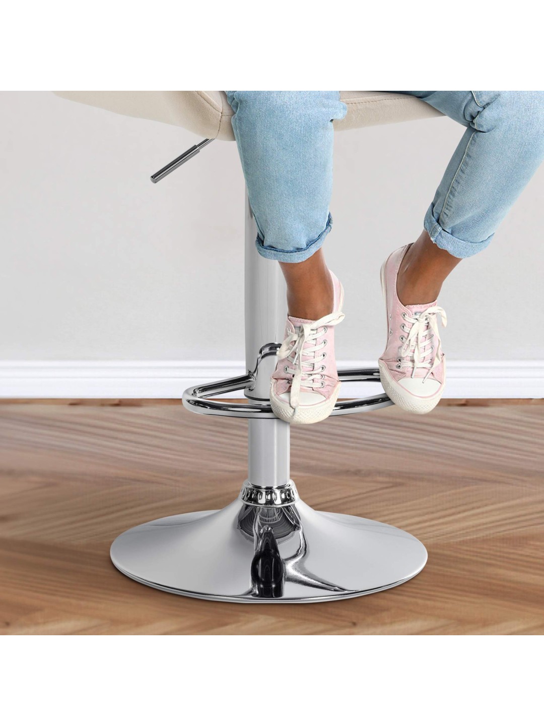 Taburete de bar Braga terciopelo cromado, crema