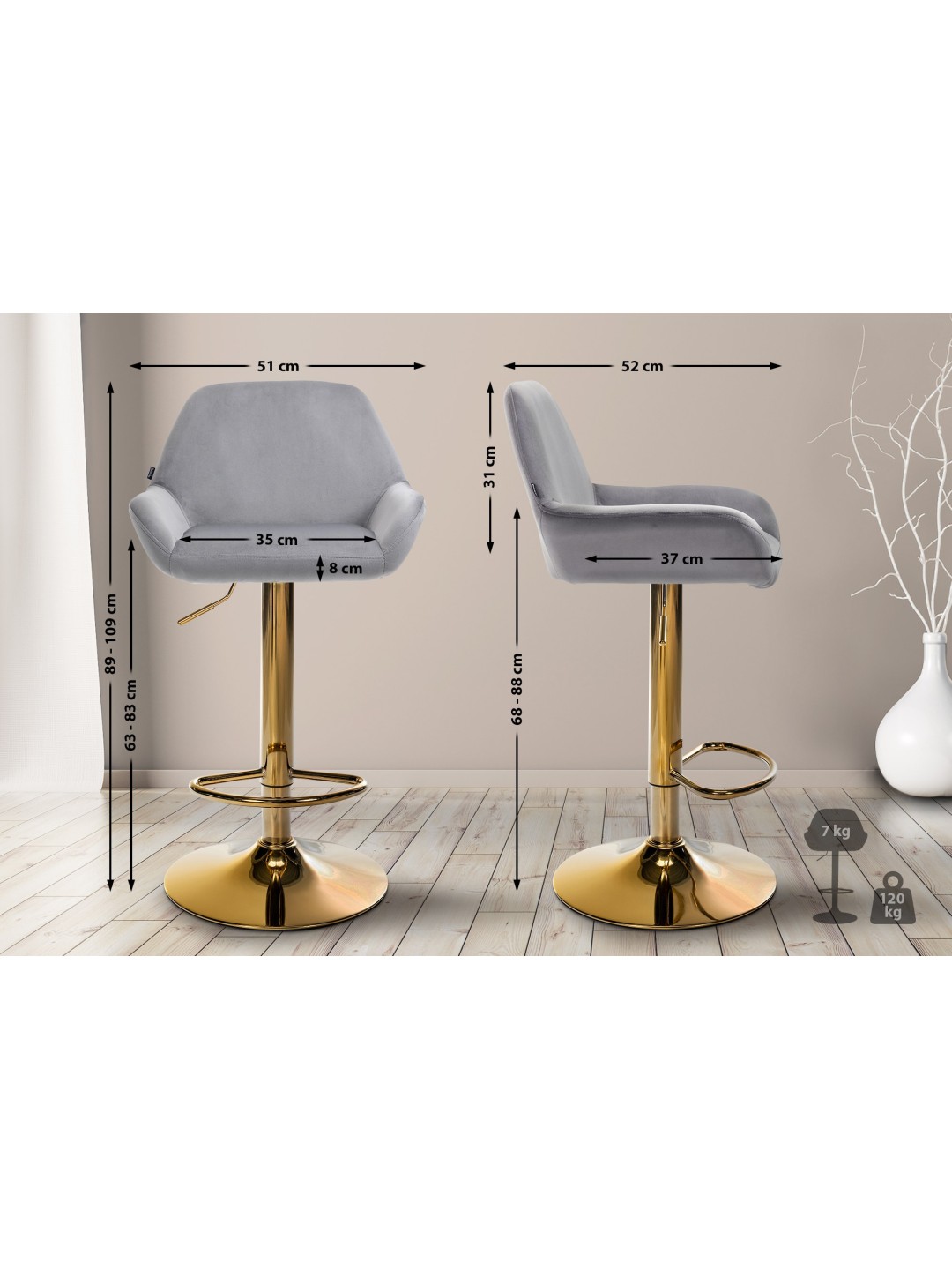 El taburete de bar Braga es un taburete moderno con una robusta estructura de metal con aspecto dorado. El asiento y el respaldo están cubiertos con una resistente funda de terciopelo y ofrecen un alto nivel de comodidad gracias a su acolchado.