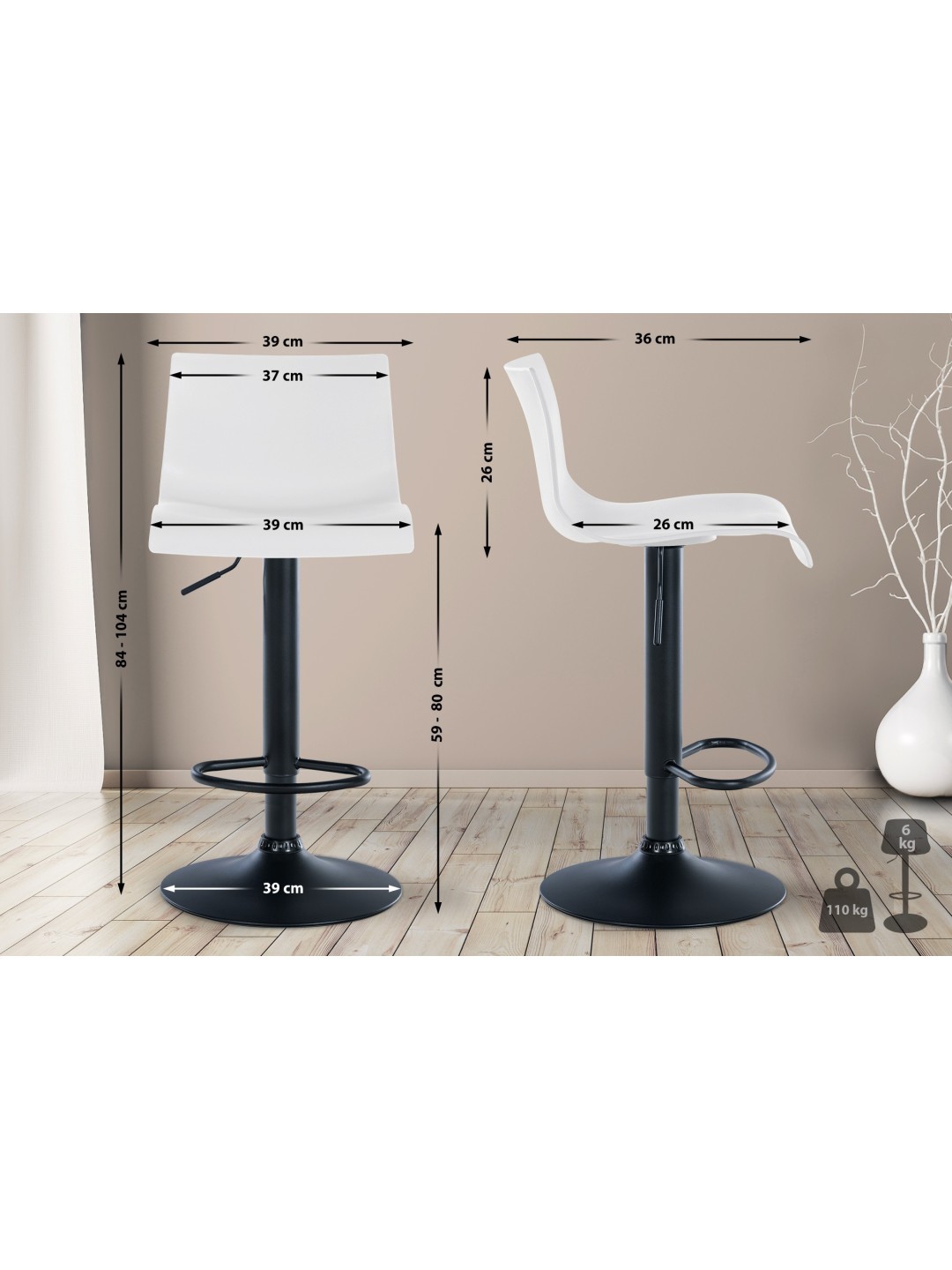 La silla del mostrador se puede girar 360° y ofrece un ajuste de altura continuo para que pueda adaptarse a cualquier altura del mostrador. Con su amplia gama de colores, el taburete encaja perfectamente en cualquier interior y le da a su cocina o bar un toque moderno.