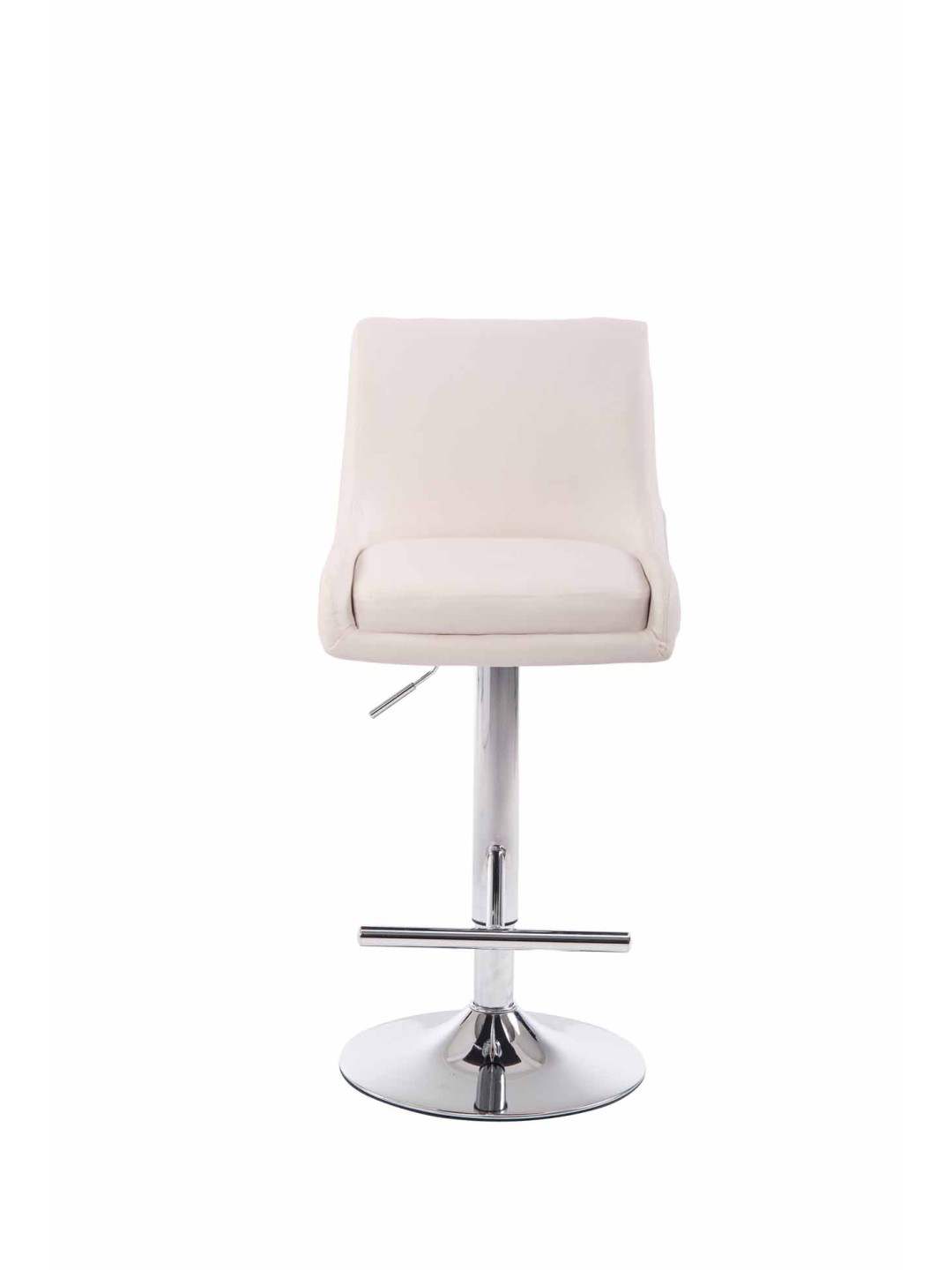 Este taburete convence por su diseño elegante. El asiento está tapizado con una funda de cuero artificial de fácil cuidado. Utilizando el elevador de gas, este modelo se puede ajustar infinitamente a la altura deseada, lo que lo hace ideal para cualquier altura de mostrador. El reposapiés, que garantiza un muy buen confort al sentarse, se puede ajustar en sincronía con la altura del asiento. El asiento se puede girar 360° con el reposapiés. La estructura está hecha de metal con aspecto cromado o de metal negro. También hay protectores de suelo debajo de la base de la trompeta para evitar que el suelo se raye.